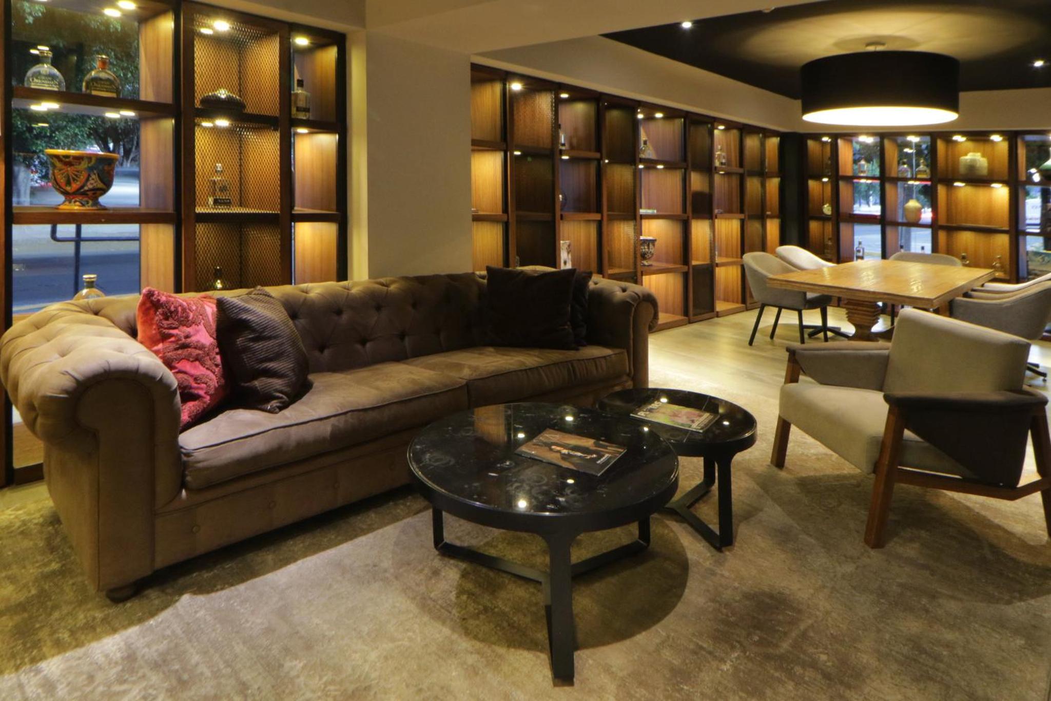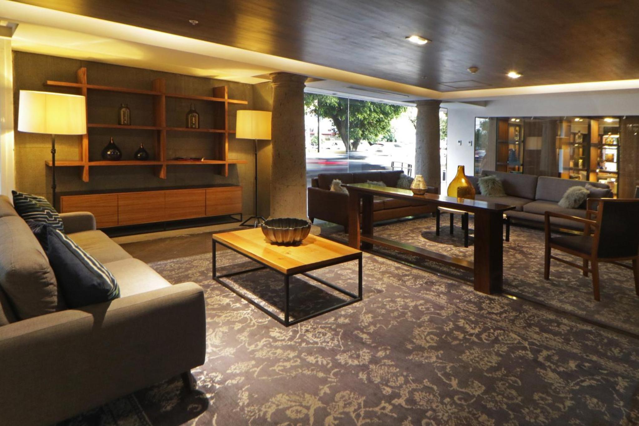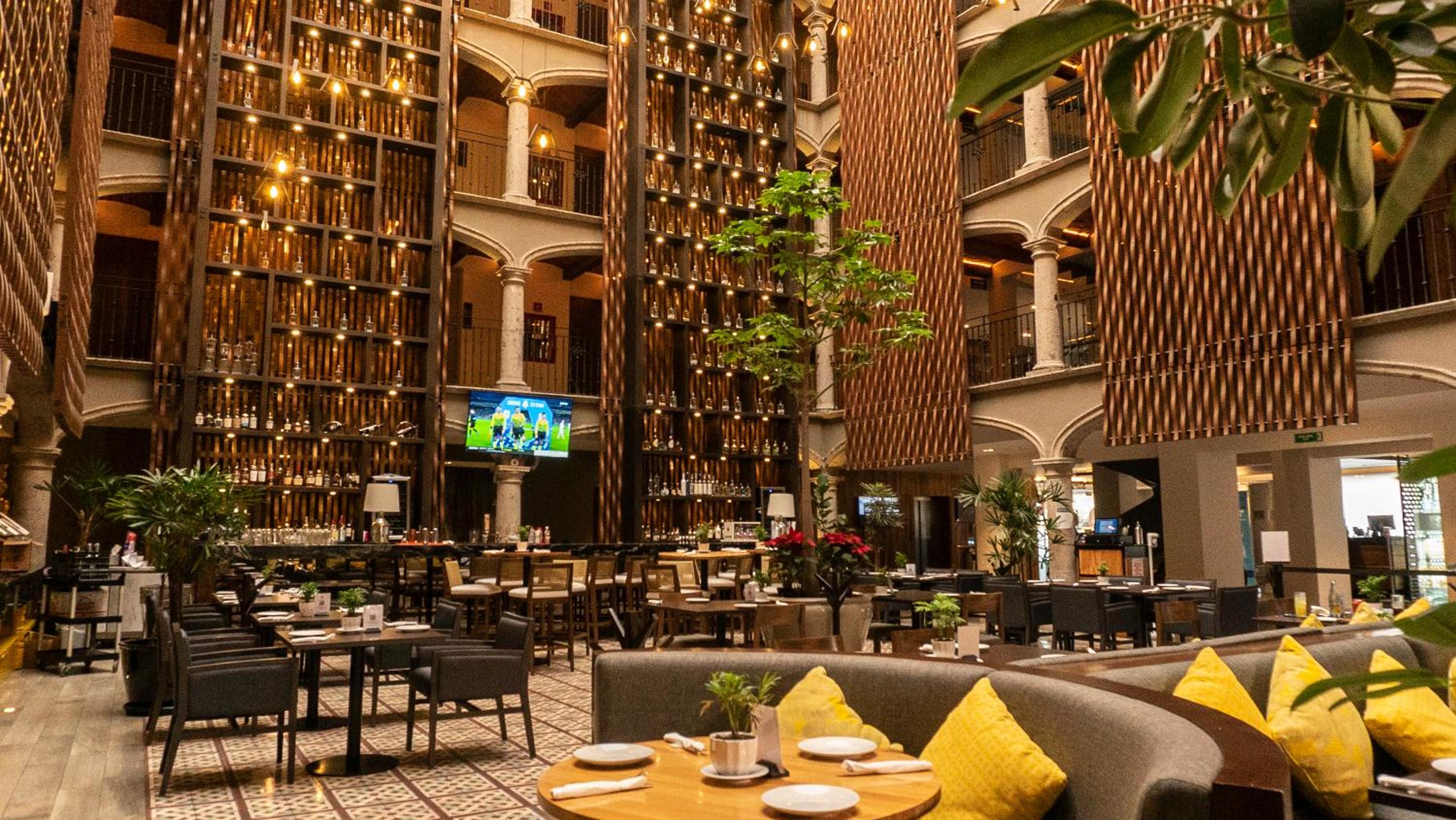 Surrounded by a central courtyard, Hotel Indigo Guadalajara Expo an IHG offers rooms with tiled floors and dark wood furniture for a cozy and inviting atmosphere.