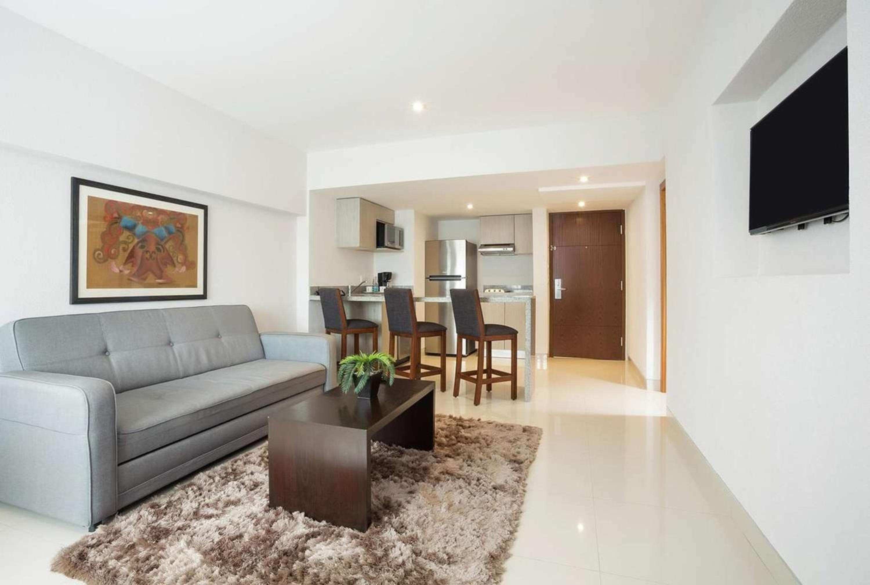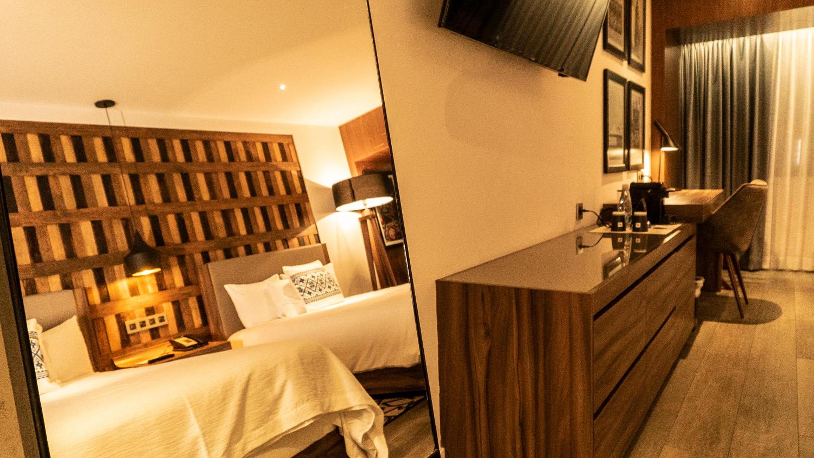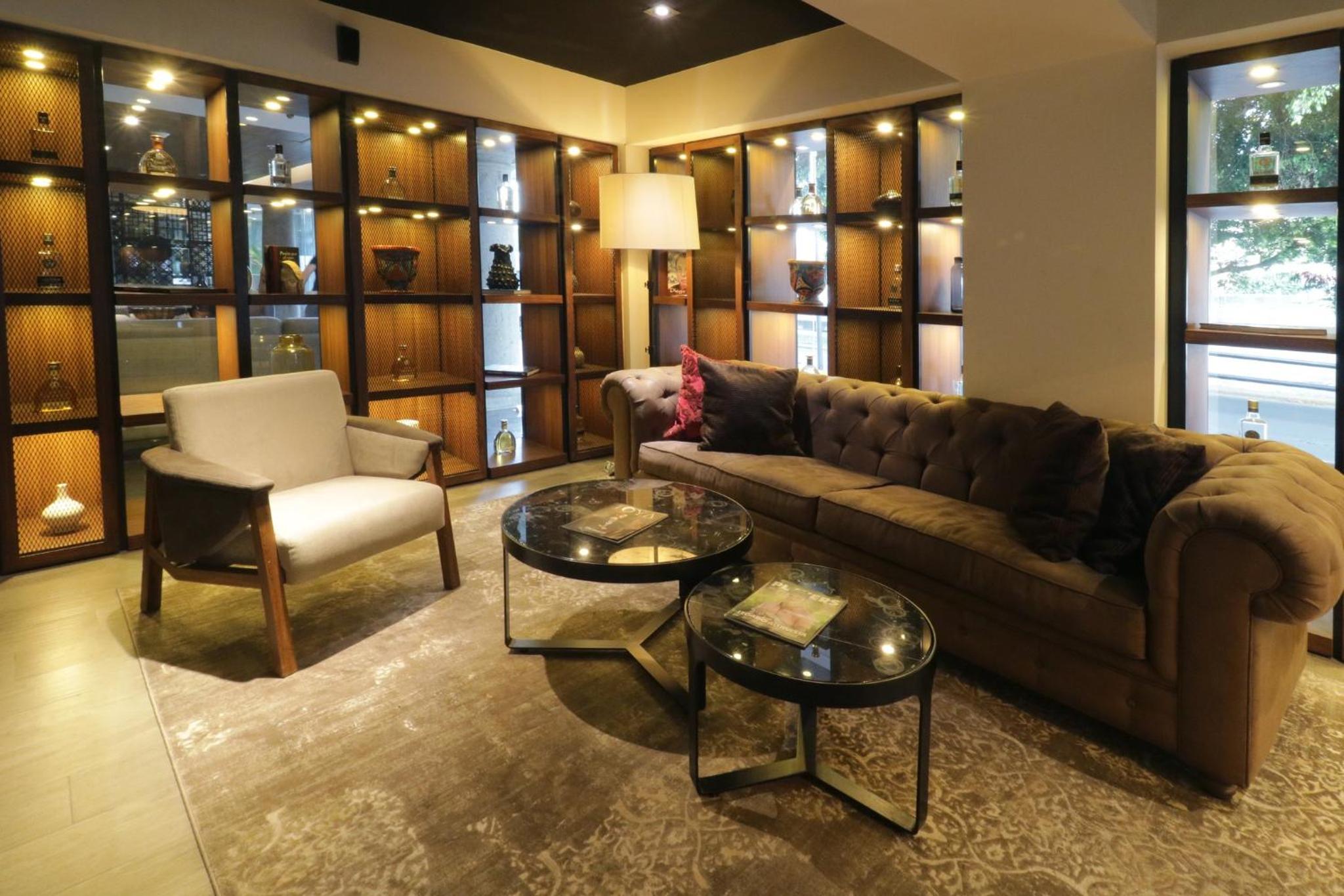 Surrounded by a central courtyard, Hotel Indigo Guadalajara Expo an IHG offers rooms with tiled floors and dark wood furniture for a cozy and inviting atmosphere.