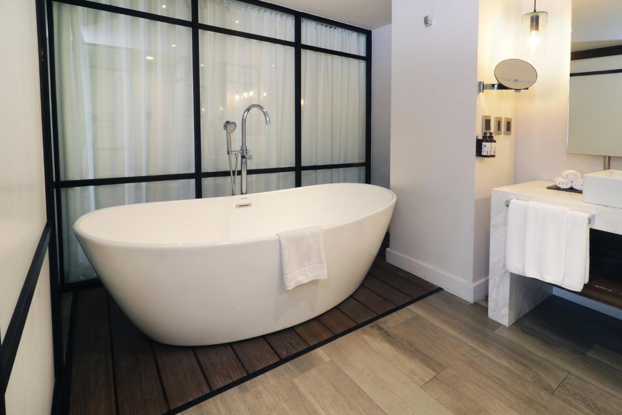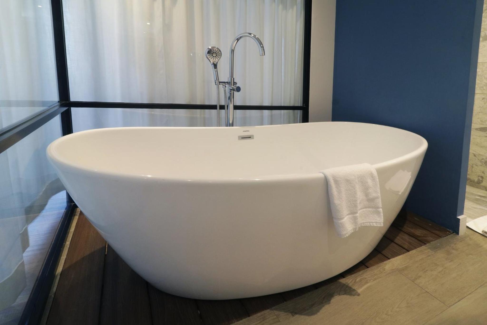 La tina es cómoda y se llena rápidamente, cuenta con agua caliente.