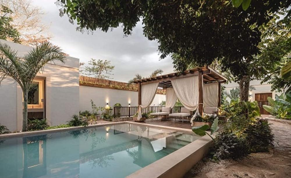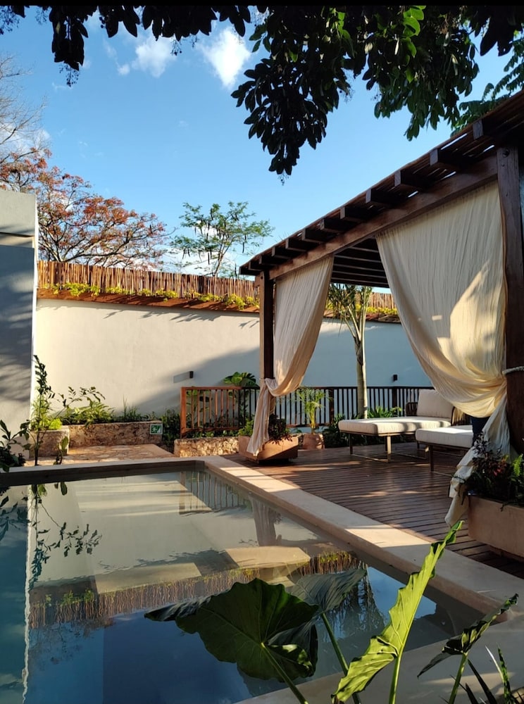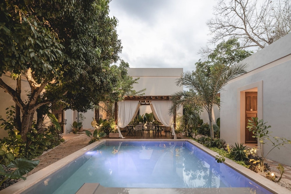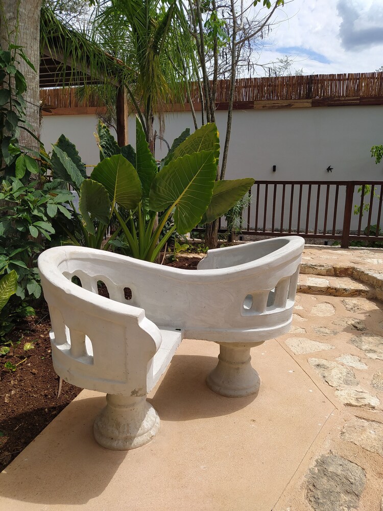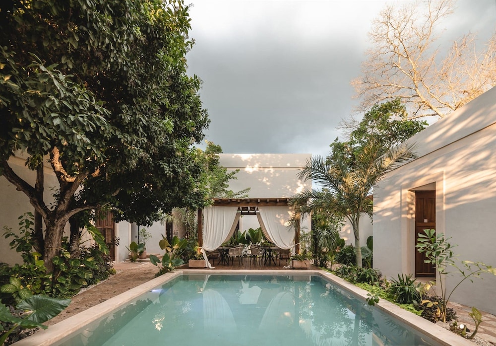 Hotel Sutuk is a lovely little boutique hotel located on the outskirts of Valladolid. The central courtyard is a lush garden of tropical plants surrounding a little pool, and the 8 rooms are large with very high ceilings. We appreciated the restrained and luxurious update to the original, historic building.