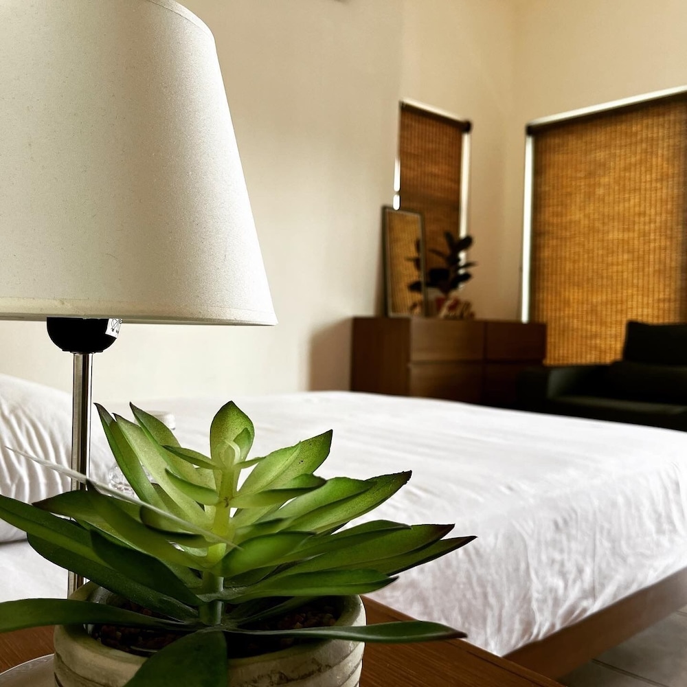 We stayed in the 2 bedroom villa, which just screamed out a lack of hospitality or thoughtfulness. Bedding was worn, pillows did not have pillow cases, only shams, slider in master bedroom did not work. Kitchen was ill equipped. No dish towels or paper towels. No coffee pot as described on Expedia. Then they charged us for coffee at the bar. Beautiful rooftop terrace. Would I stay here again, NO.