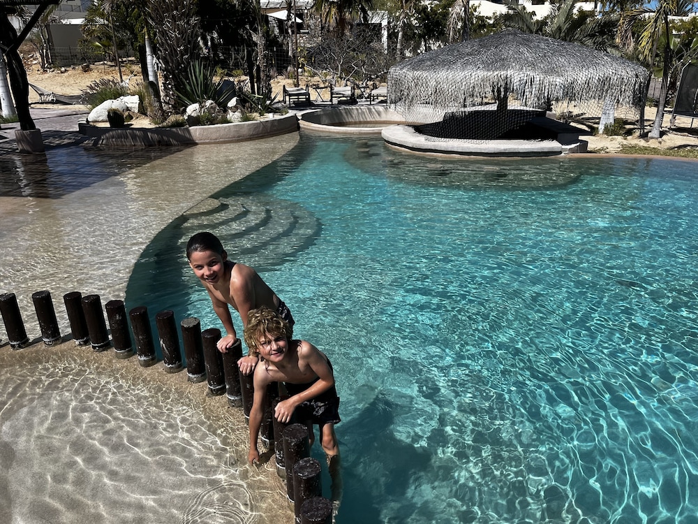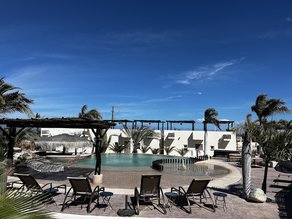 The hotel is in need of maintenance and some TLC, the beds are as hard as rocks, because their standard rooms are full sun facing, they need to have black out curtains to keep the rooms cooler due to the climate. Also, the womean that checked us in over charged the total rate booked at and said "thats just how they get you to book, this is what we charge here". She double charged the tax rate, an additional $35. To top it off a dog walked right up to the pool and pee'd in it. That ended our swimming time. Oyr family came to soend the afternoon with us as the hotel was empty and I was charged $100 pesos per person despite buying food and drinks there. They did have one staff member that was helpful and very kind, he comes from La Paz everyday to work there. We are building in El Sargento, and come all the time while working on our place. But we will never stay here again and certainly will never recommend anyone stay here.