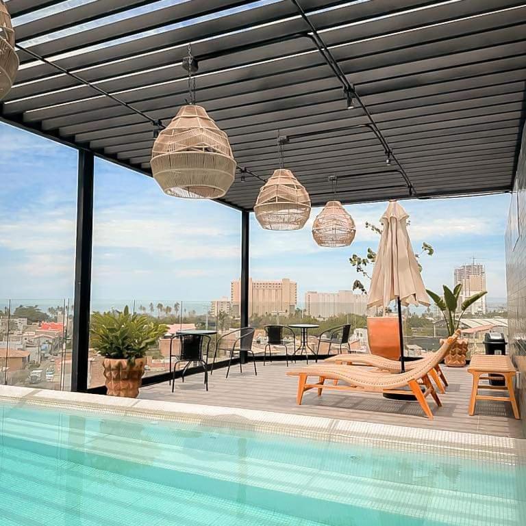It is very nicely furnished. I loved that we had a corner unit with 2 walls of sliding glass doors that opened onto 2 balconies. It created indoor-outdoor living at its best. The kitchen is well designed and appointed with top-of-the-line appliances and everything needed to prepare a great meal. The rooftop dipping pool is nice and cool with expansive city and ocean views. The host, Alex, is fantastic. Our driver who was new to the city got lost trying to find the place and Alex drove to meet us and guide us back to the apartment. He also allowed us to have as late of a checkout as we wanted because it was my birthday.