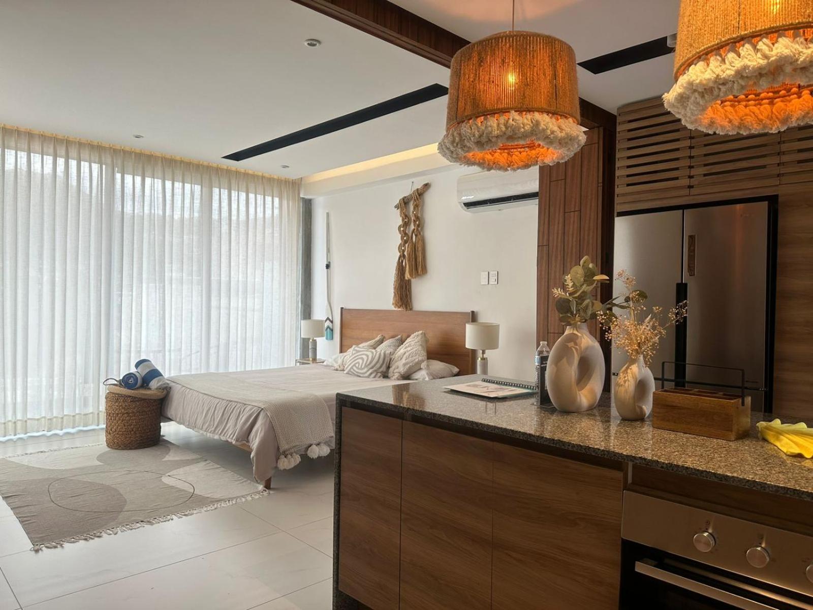 Our accommodations were simply stunning. Of course, we saw pictures of the rooms prior to making our booking but when we got there, it was even better than expected. This new apartment condominium, four story walk up, has wonderful balconies overlooking both the mountains, along with views of the ocean. The floor to ceiling sliding glass doors open entire walls between the apartment and the still vibrant, local community. Our new kitchen came with everything you needed to take care of yourself. A wonderful open market is close with many Mexican food restaurants and food stalls. To top it off the hospitality and assistance we received from Alex, the manager, was exemplary. Anything required he was there to assist. Our only regret was that we didn’t book for a longer period of time.