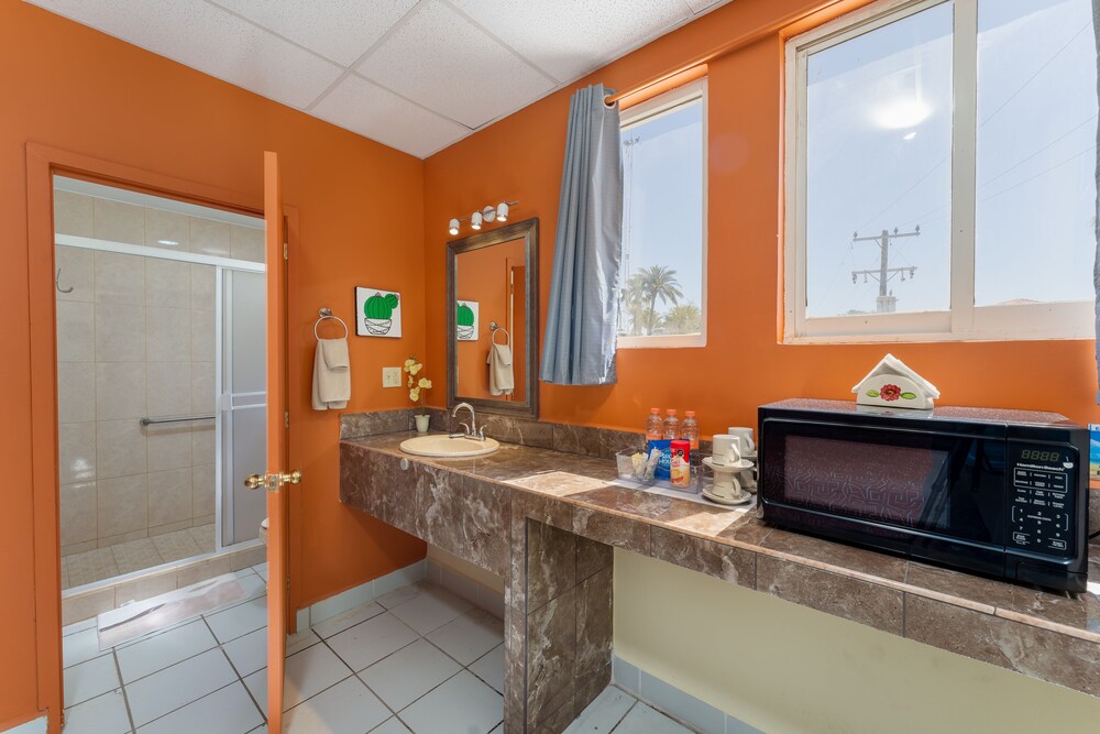 I was very disappointed in the size of the room. It was smaller than my single room probably less than 12 x 10‘. There was no chair to sit in nor somewhere to put our luggage so I actually tripped over it twice. The walk up to our room was crazy for my physically challenged girlfriend. We were tired, we took the room and then left the next day for La Paz. I was surprised instead of the first that I had in writing they charge me about $10 more Without explanation. Standard room I believe is a candidate for bait and switch.