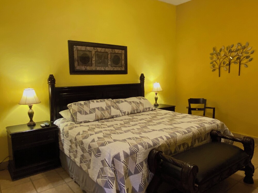 Es un lugar muy bonito, tranquilo y accesible. Es facil llegar a la plaza y varios restaurantes a pie. Tiene su propio estacionamiento, no cuenta con restaurante, pero tiene una cocinita que puedes usar, todo en general me encantó, el ambiente casi familiar. Solamente siento que a la alberca le falta un poco de limpieza, pero las habitaciones y todo lo demás están relucientes.