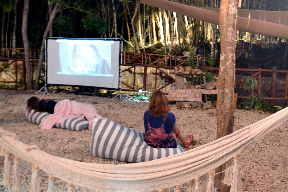The cenote was full of leaves and we didnt want to use it - looked murky. The pods are fun but keep expectations realistic. We were provided no blanket and the air conditioner got cold but shutting it off it got very steamy. Woken up by two roosters at 4am and every hour afterwards. We did not get the famous hot chocolate and there was no coffee in the am. We would do this again but get a blanket.
