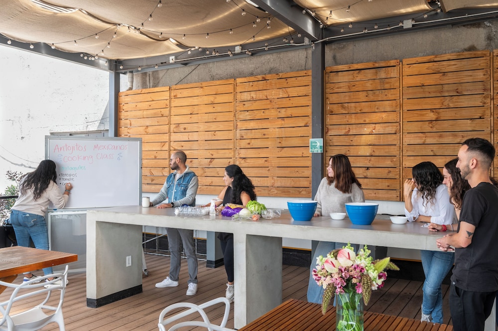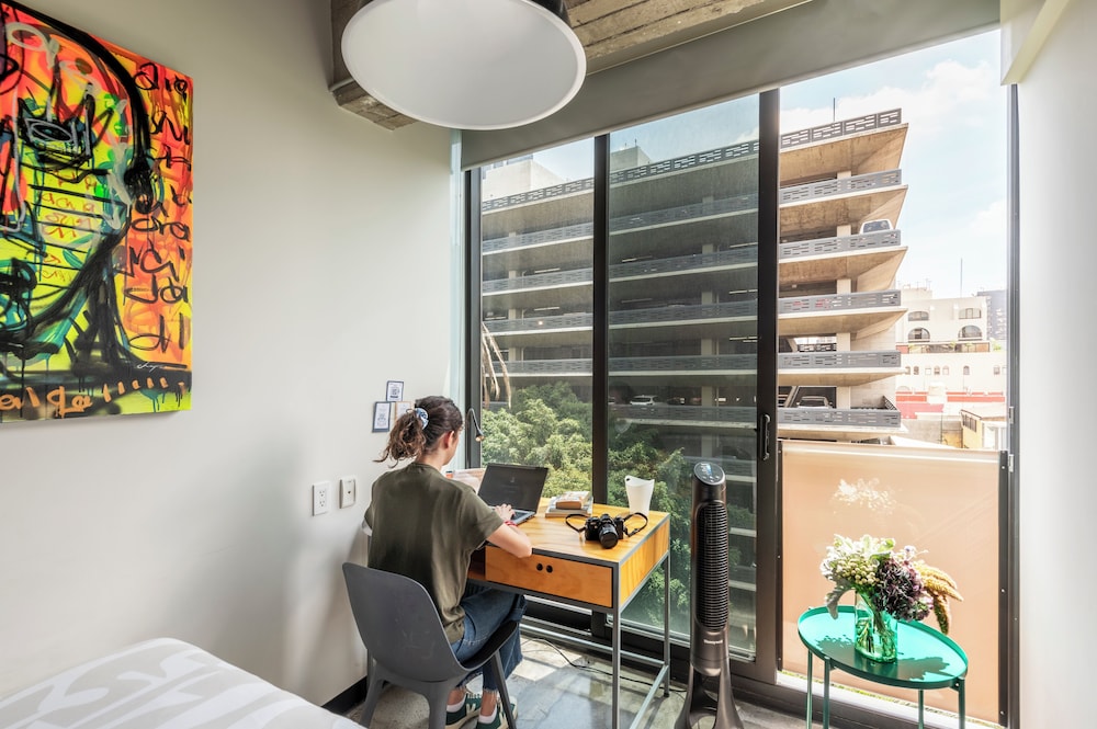 If you visit Mexico City you have to come here. The check in and check out process was super easy. You just get the digital key and that’s it! The staff are very friendly and I had the single room so I didn’t really interact much with others but when I did they weee super sweet. This is the PERFECT location. It’s right next to all the great restaurants, a 15 min walk to Roma Norte, next to the metros and bus, walking distance of every major site, has the club strip nearby and tons of food and merch vendors. I completely recommend this spot. It is also very clean and has separate dedicated floors for working studying and chilling. They even have a rooftop and free laundry! I would say tho this neighborhood is poppin if you are looking for something really quiet and suburban it is not the place for you. It is very city like! The noise isn’t unbearable but you will hear some chatter at night but nothing you crazy. I was still able to sleep very peacefully at night. And there were times were I would be outside at 2 am on a random Wednesday and there would be people outside aswell lol! I felt totally safe.