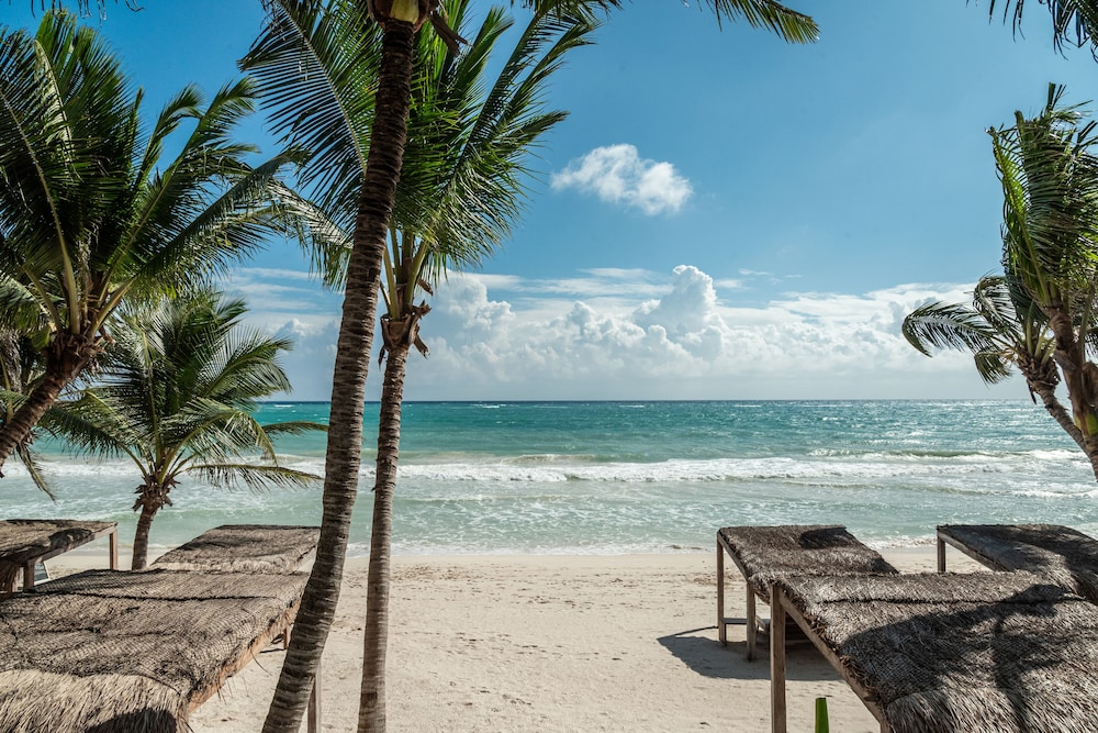 Das gesamte Design des Hotels und der Zimmer ist enorm schön und von der Dachterrasse kann man sich einen wunderschönen Sonnenuntergang ansehen. Der zugehörige Strandabschnitt ist ebenfalls sehr schön. Alle Bars und Restaurants in Tulum Beach sind fußläufig sehr gut erreichbar. Zudem stehen auch kostenfreie Leihfahrräder zur Verfügung.