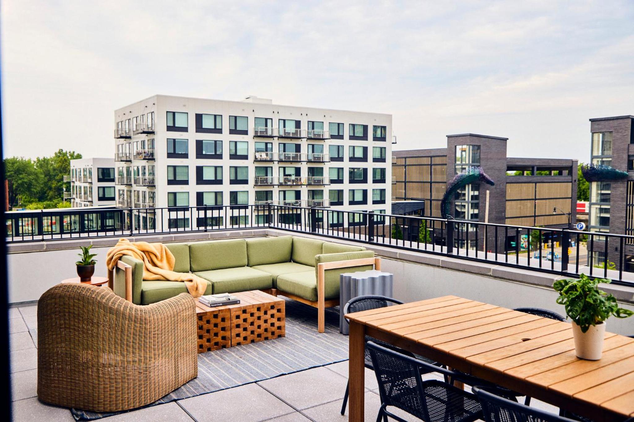 The Junto in Columbus offers an array of top-notch amenities for a comfortable stay, including free bikes, a fitness centre, and a beautiful garden. Guests can also enjoy the shared lounge, perfect for relaxing after a day of exploring the city.