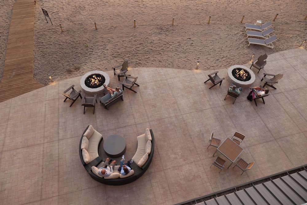 This property is perfectly located right on the beach, in walking distance of nearby shopping and eateries. The outdoor patios were so inviting with a patio bar, tons of outdoor seating, and lovely fire pits. The hotel was beautiful and the staff was so friendly. The onsite restaurant was delicious and lovely too! We will definitely be back with our family!