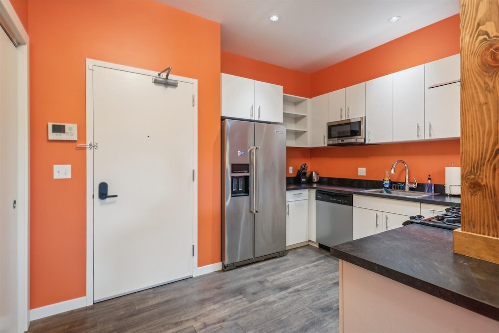 We had an amazing stay! This place was perfect and was only a five min walk to the Revolution Hall where we were seeing a concert. The steam shower and jetted tub were a dream!!! The fire in the master suite was so relaxing. This place was perfect for our group of six. Had everything we needed and more. The property was also very responsive and communicated very clearly about everything.