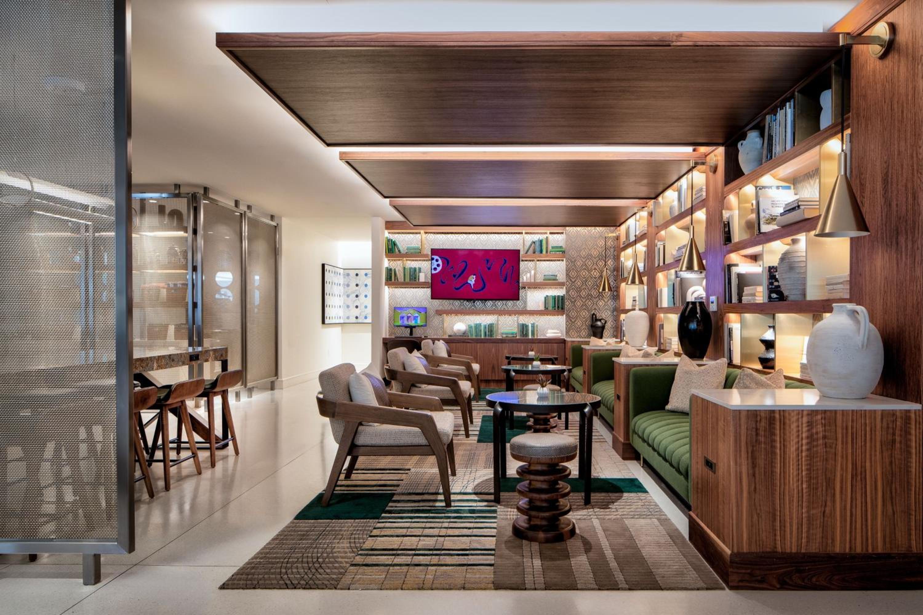 The interior décor of the hotel is really nice — super modern and charming. I loved the library downstairs, the pool library and the rooftop bar. Everything is beautifully designed. The beds are comfortable