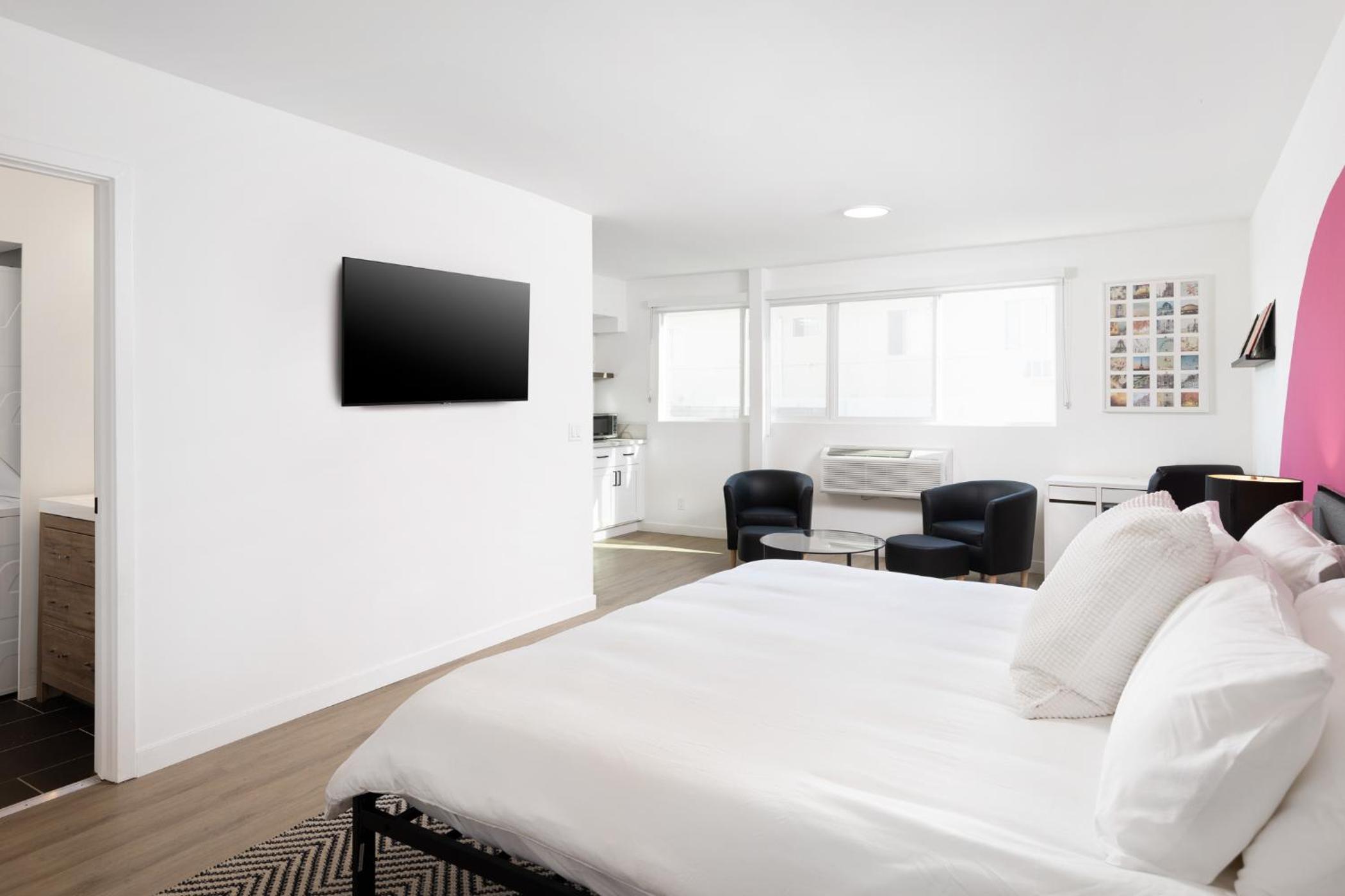 Excellent location in Hollywood, 3 mins walking to the Fame avenue, 7 mins driving to Universal Studios. Clean and convenient. Full kitchen make you save money in meals. No contact with stuff but everything was clear and efficient for checking in/out. Convenient garage.