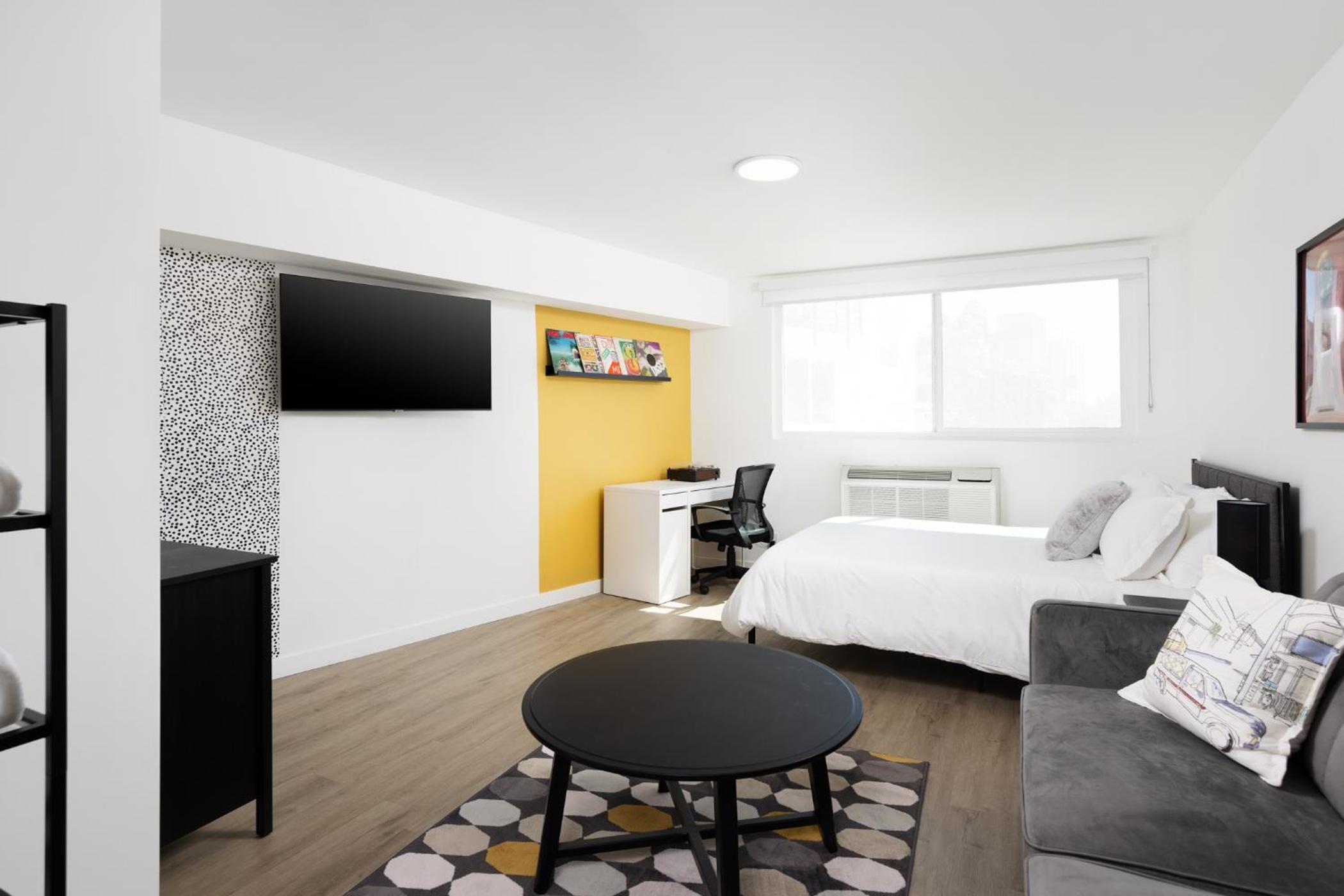 Très bien localisé à quelques minutes à pied du Walk of fame. L’appartement est très bien équipé avec tout ce qu’il faut à l’intérieur, il est simplement un peu bruyant car on entend lorsque des gens passent dans le couloir.