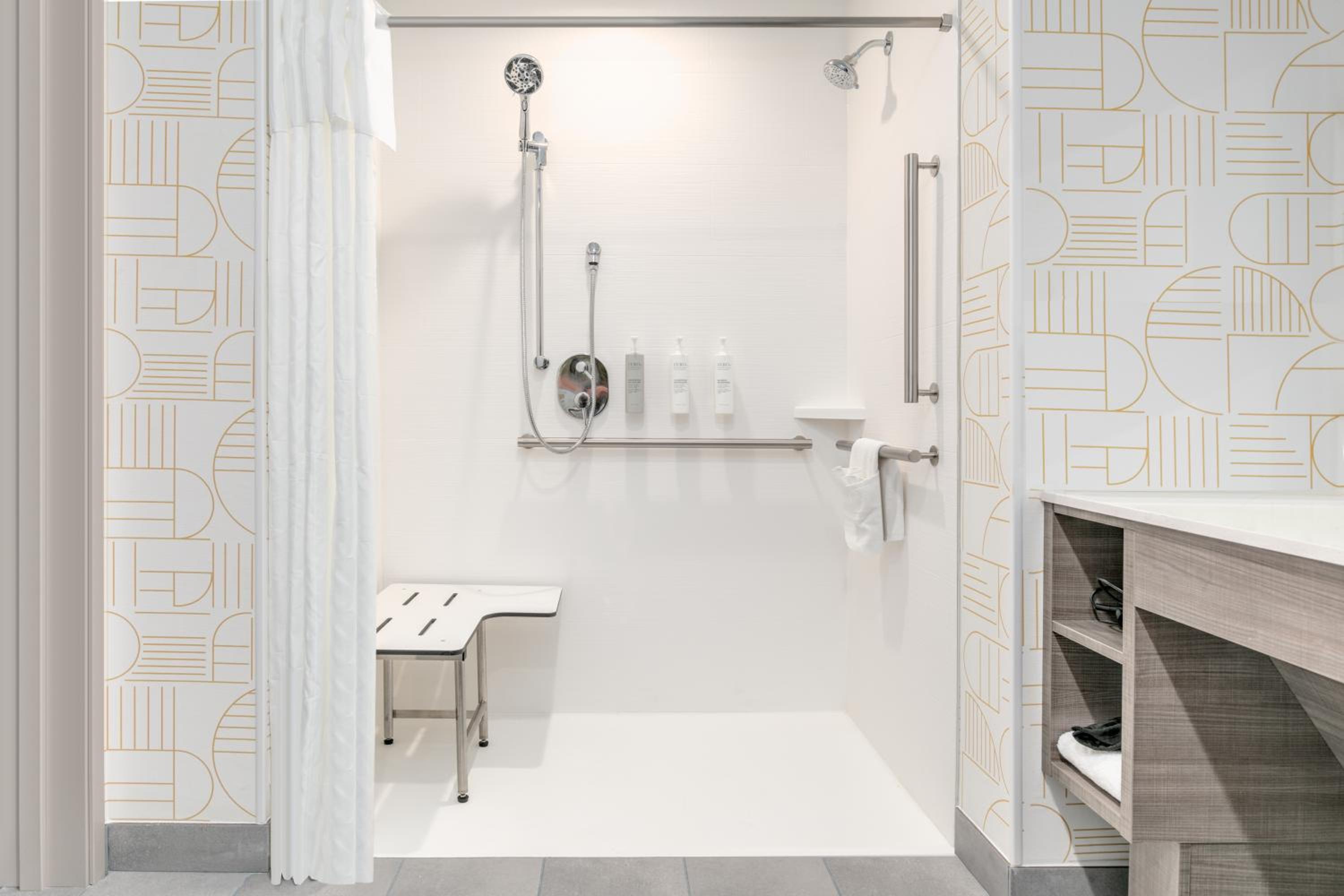 Quiet, very clean, spacious, nice curtains, and large windows that felt like you are outside. Great location. Good staff.