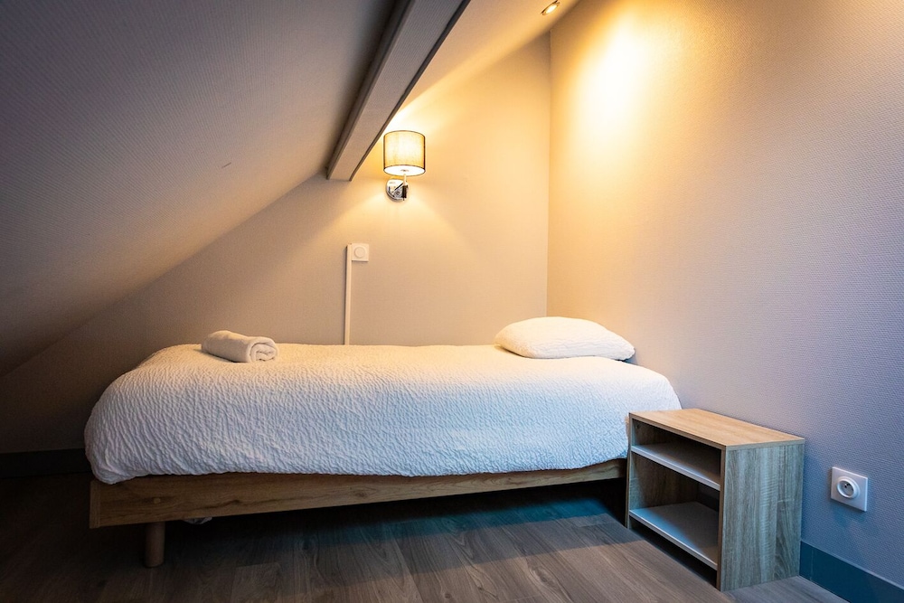 Le site ne vante pas le fait qu'il n'y a qu'une seule salle de bain minuscule, avec WC à l'intérieur, pour 4 chambres, soit un partage potentiel entre 8 personnes ce qui est quand même déterminant dans le choix de la réservation. 3 niveaux avec des escaliers très raides. J'ai angoissé d'avoir à me lever la nuit et descendre cet escalier accidentogène. Draps et taie (genre seersucker énorme) inconfortables, petit lits courts... et isolation acoustique limite pour un réveil en fanfare à 5h, par la toux d'un voisin de chambrée. Je ne recommande pas.