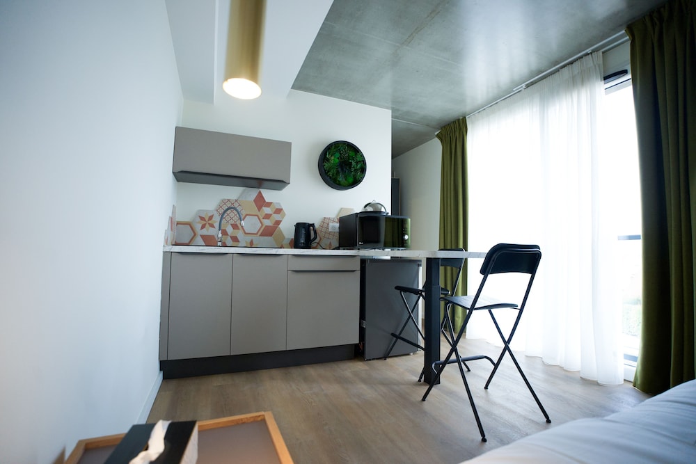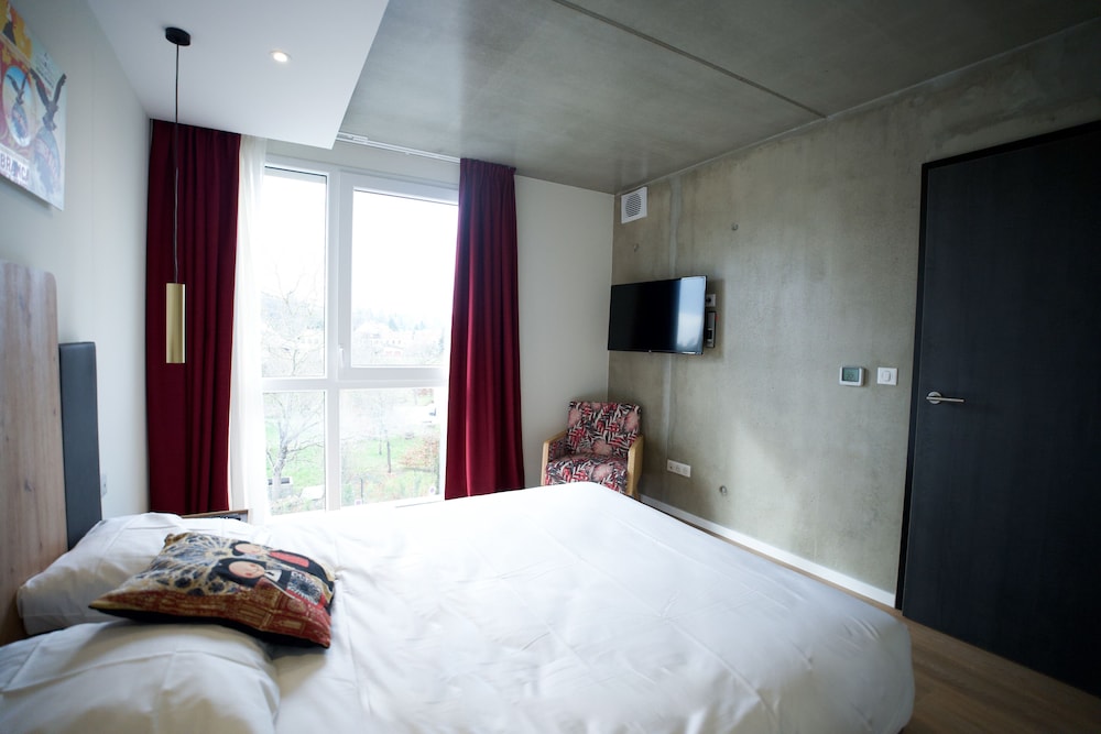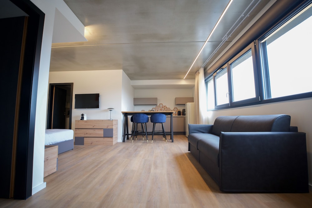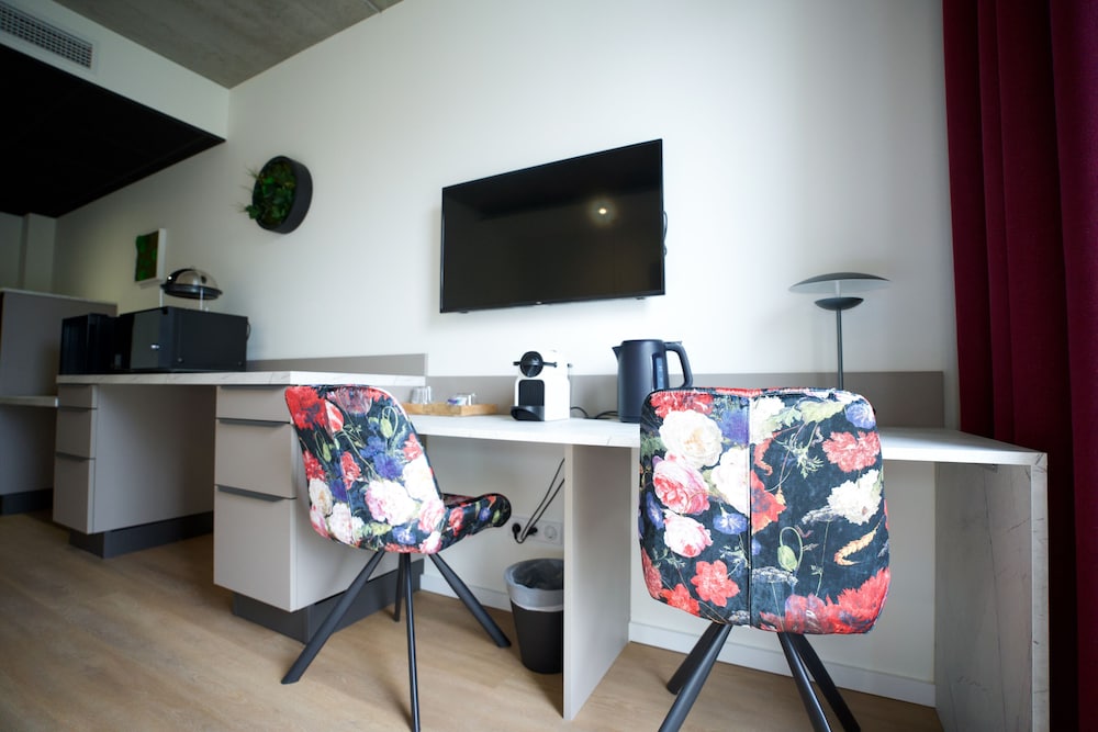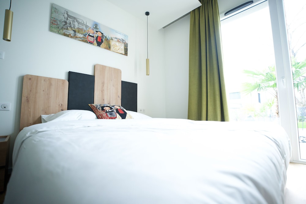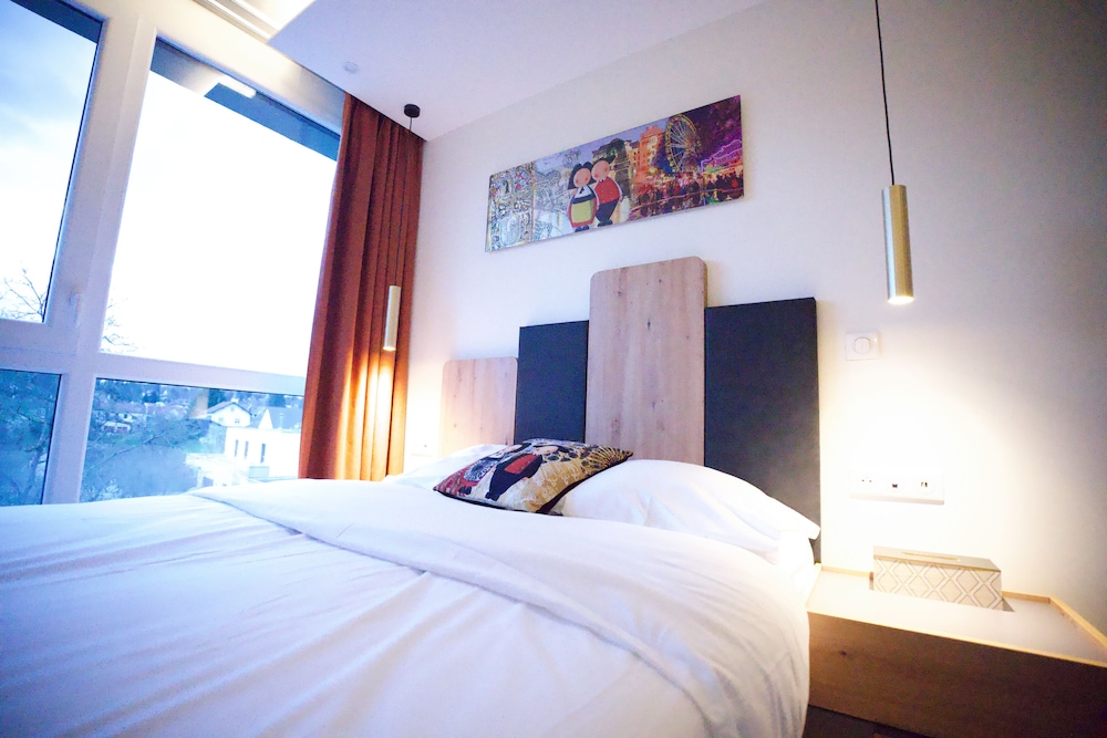 Quartier calme , bâtiment agréable à regarder , parking avec des points de chargement pour les V.H électriques,hybrides. Hall d' accueil idem,tout est propre et bien installé. Acceuil très aimable, documentation touristique à disposition . Chambre climatisée, propre et confortable
