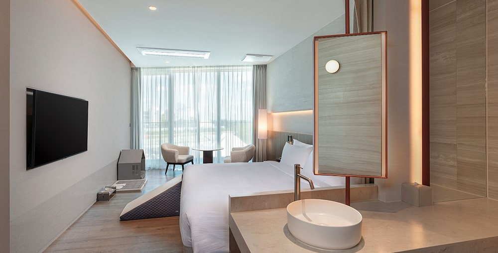 Great hotel if you are coming with your family or partner. They have free refereshments and breafast (when booking with hotels/com). Rooms were amamzing. Small village nearby with bars and restaurants. It's a hidden gem in Gangwan-do.