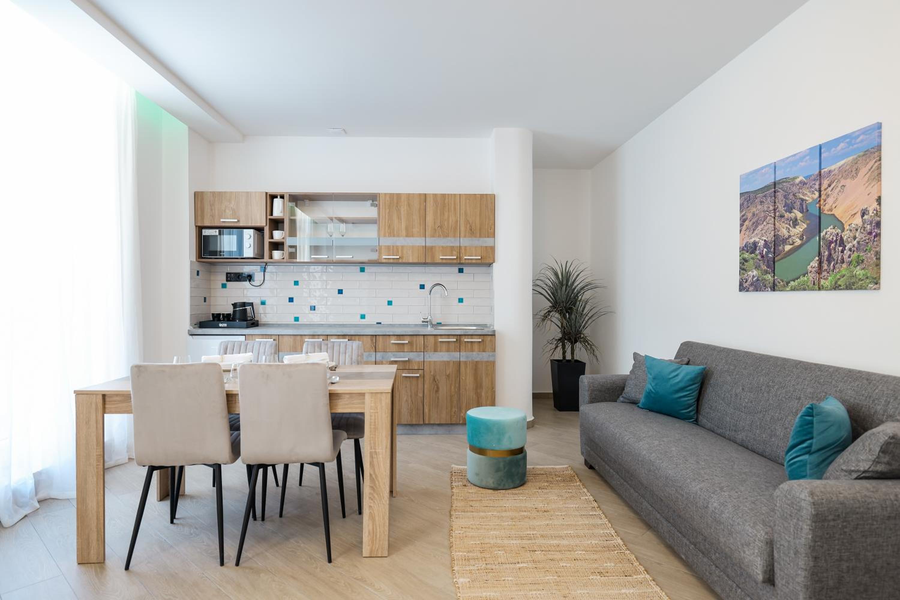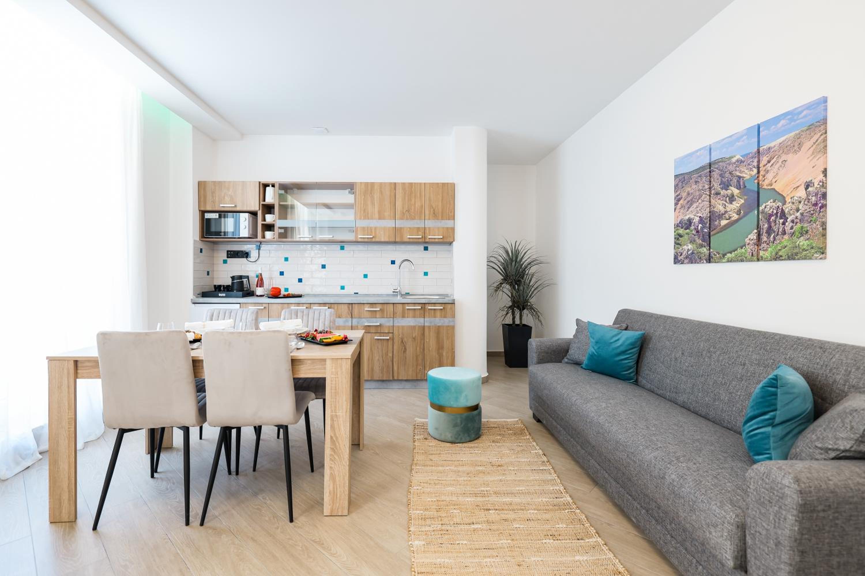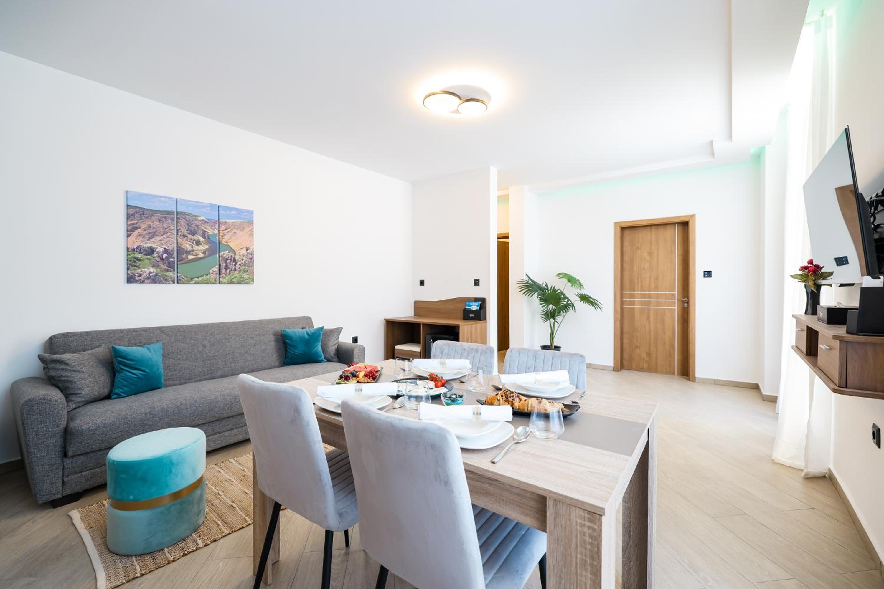 Veličina smještaja je top U kupaonici imate i higijenske potrepštine, papuče... mini kuhinja sa hladnjakom da si nešto uzmete ako ne želite hotelski doručak, kuhalo za kavu i čaj. Restoran nudi doručak a la carte po želji a i ne morate. Ponuda za ručak/ večeru je odlična. Wellness -masaža i sauna dostupni cijelo vrijeme. Lokacija - blizina NP Paklenica i slapova Zrmanje. Sve pohvale hotelu i osoblju.