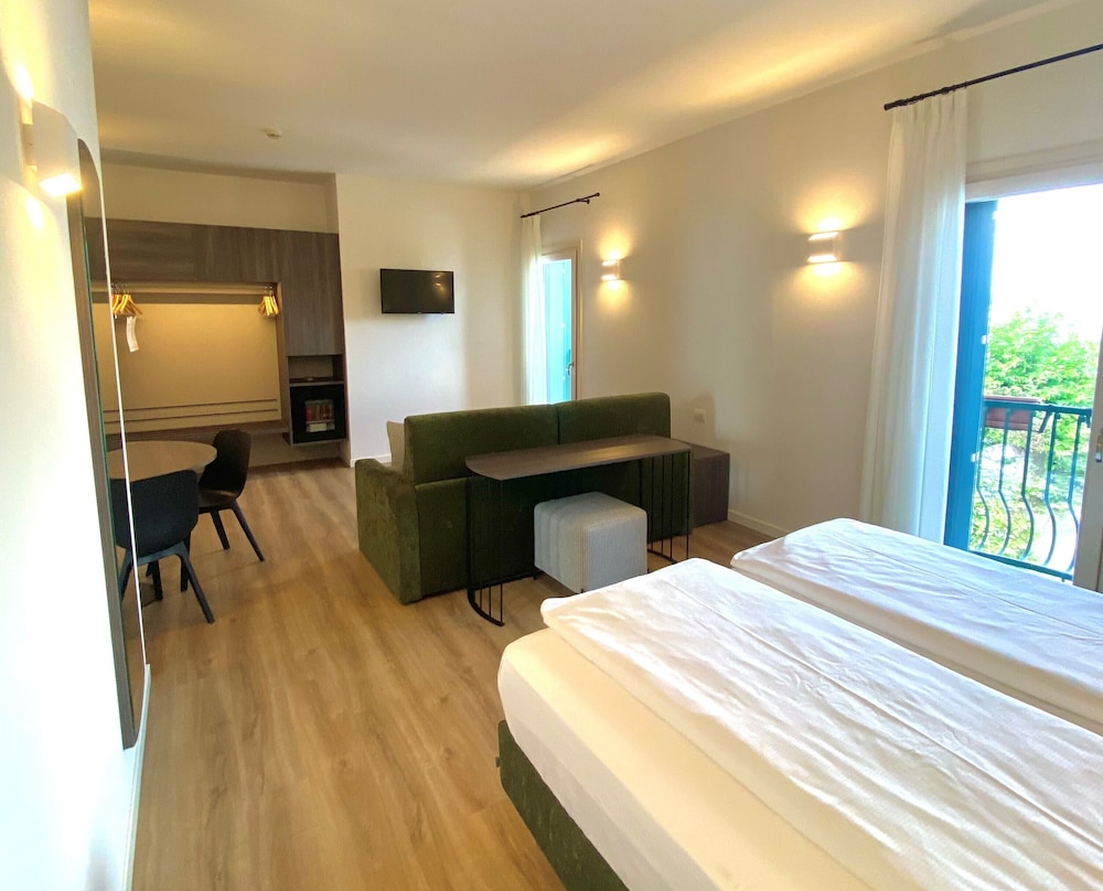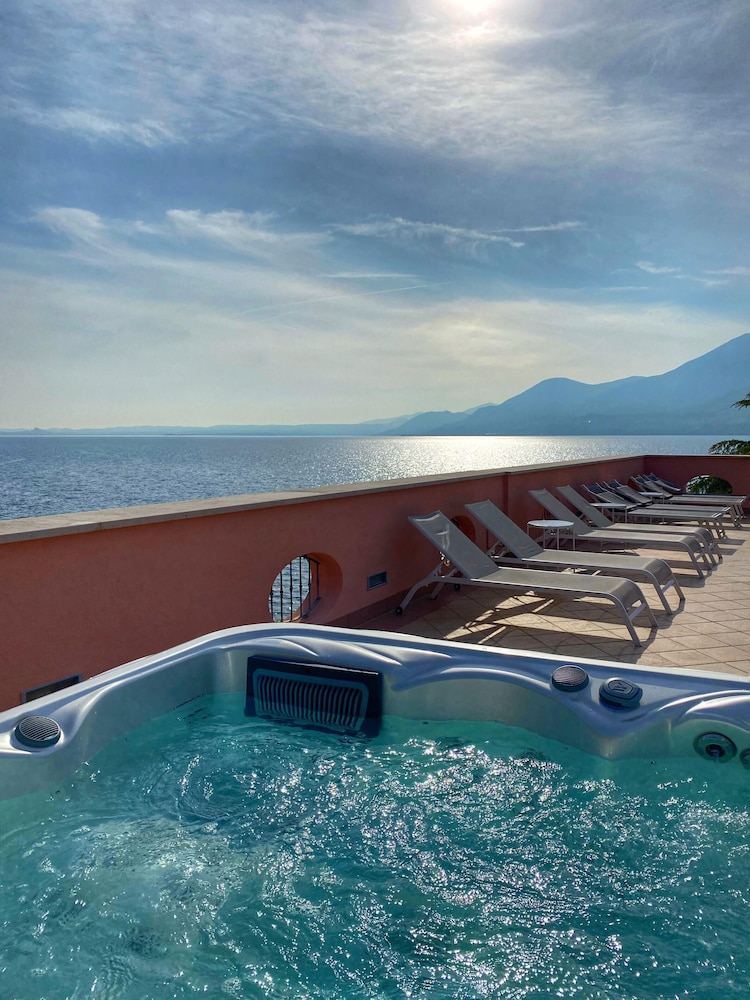 Stille og rolig lille privat hotel. Til prisen ok, rent pænt værelse med god udsigt og mulighed for parkering. Ligger godt ift. Gardasøen hvis man ikke vil være i et for crowded område. Morgenmad under middel, men ok, medarbejder/restaurant ejere flinke og hjælpsomme. Receptionist tilstede kort om morgenen/formiddag ellers kan man skrive til hende. Fin udsigt fra rooftop med skøn udsigt en enkel jacuzzi der har åbningstid 10-1& så når man kommer hjem om aftenen kan man ikke nå at nyde den. Hotels.com skriver der er pool men der er der ikke. Restauranten ligger super ud til vandet. Alt i alt ok til prisen hvis man ønsker luksus skal man finde et andet sted.