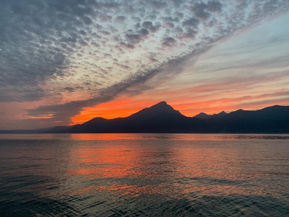 Lovely hotel on the side of the road overlooking Lake Garda. Lovely restaurant across the road. Busy road but can’t hear the traffic noise in the room