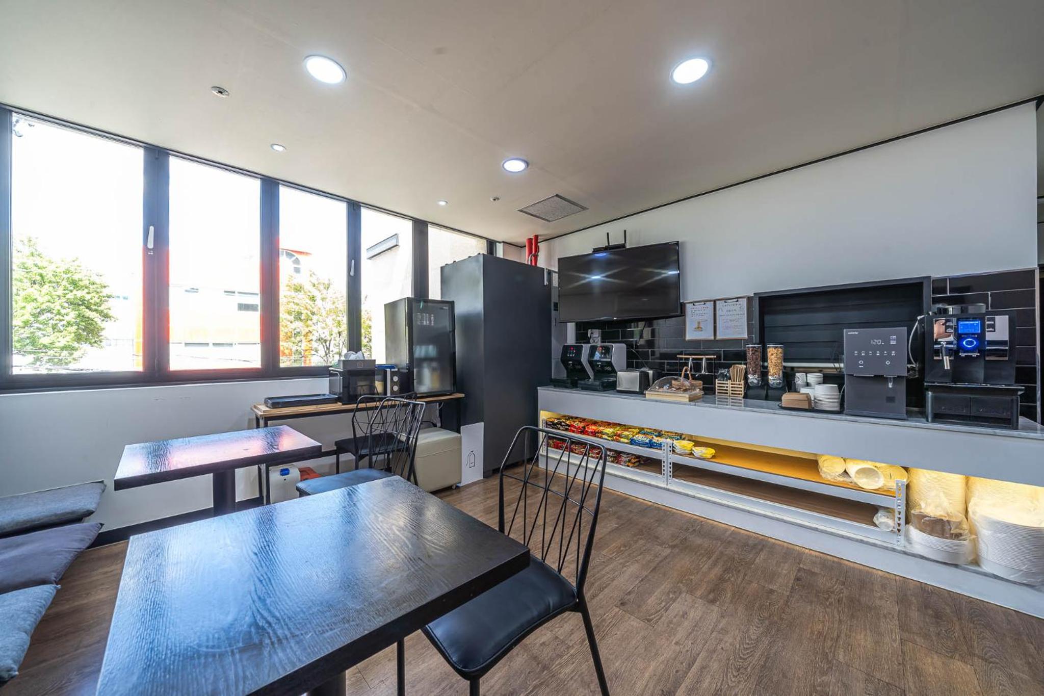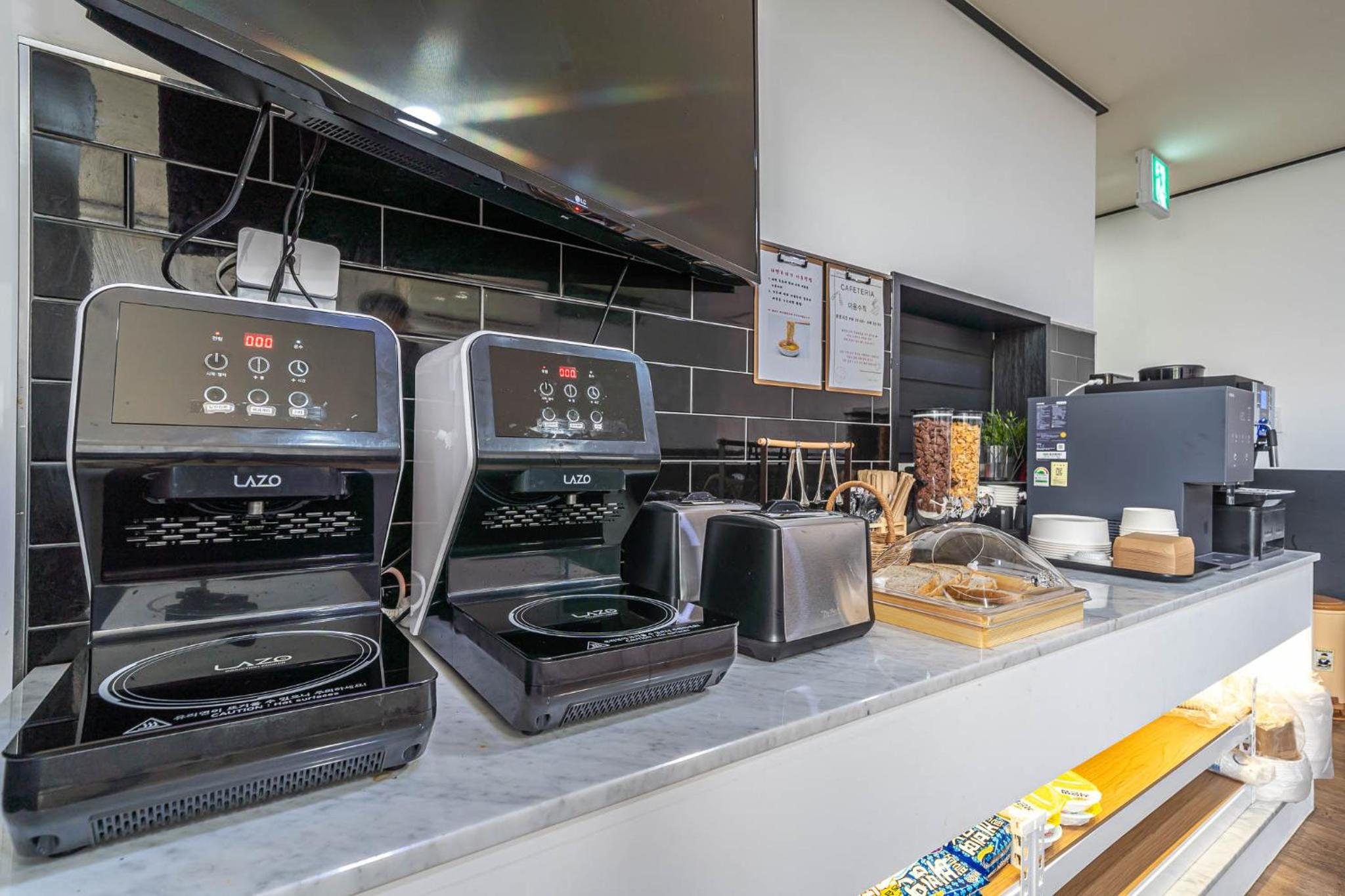 호텔내부에 카페테리아를 저녁 8시부터 다음날 오전 10시까지 이용 가능하고 라면 및 음료 / 간편간식이 구비되어 있어서 언제든지 먹을수 있어서 너무 맘에 들었습니다.
