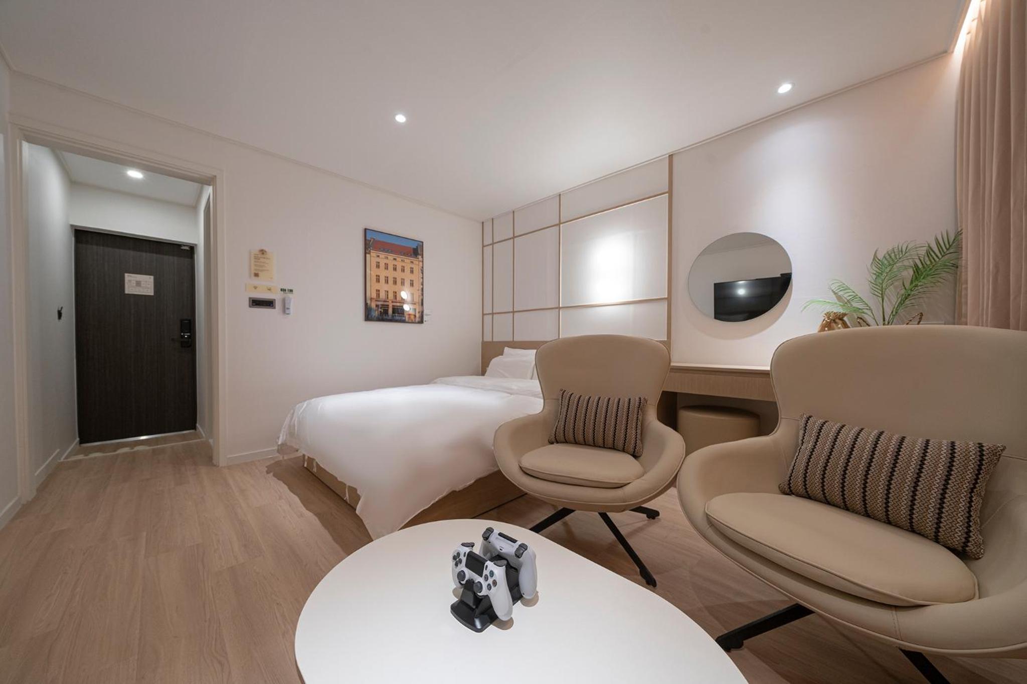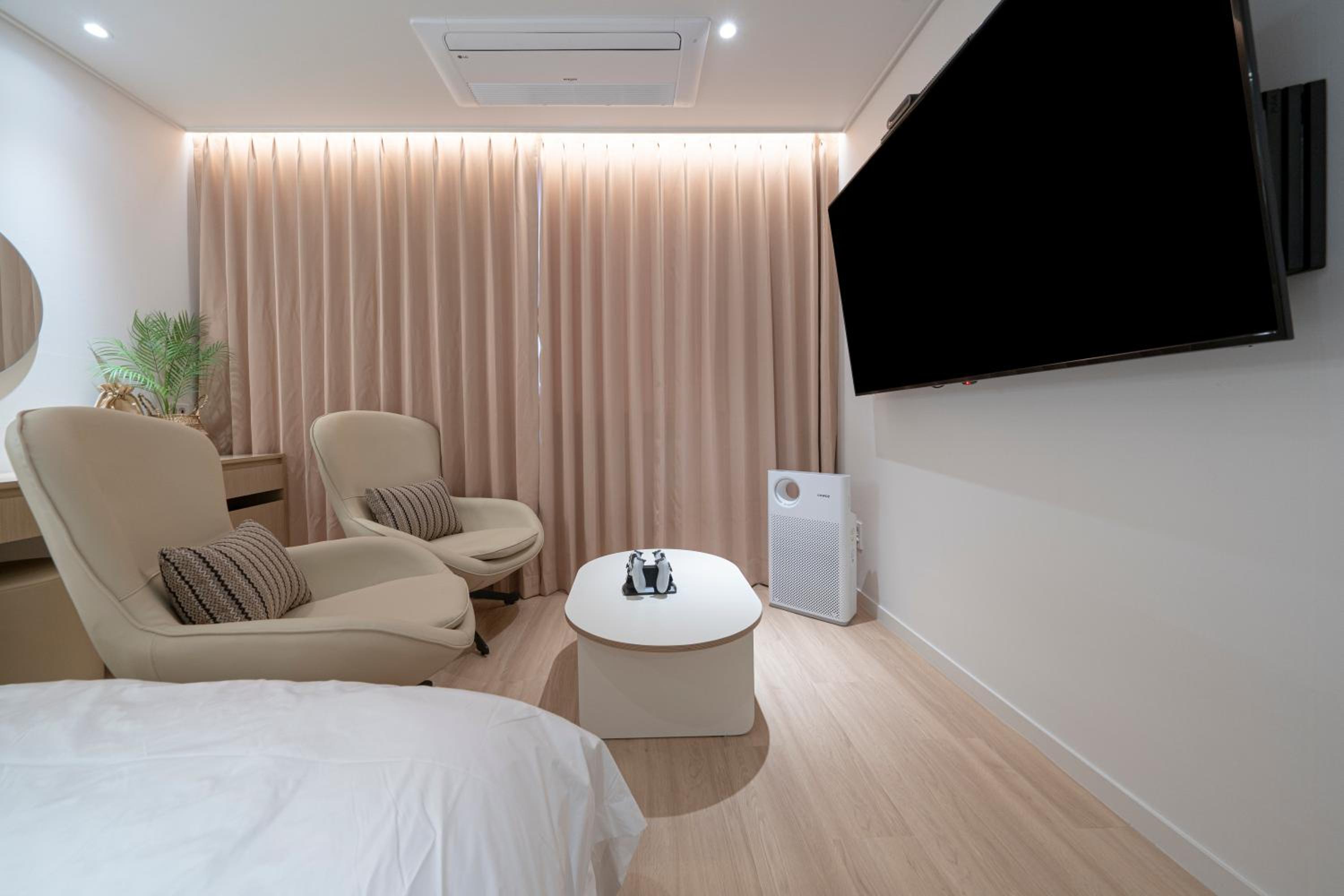 인근 엔씨백화점에 주차해서 편했고요, 방은 깨끗하고 청소도 잘 돼 있었어요. 최근에 지은 거라는 느낌이 외관에서부터 전해져왔어요. 출장 중에 하루 잔 곳인데, 더할 나위 없이 딱 좋았습니다.