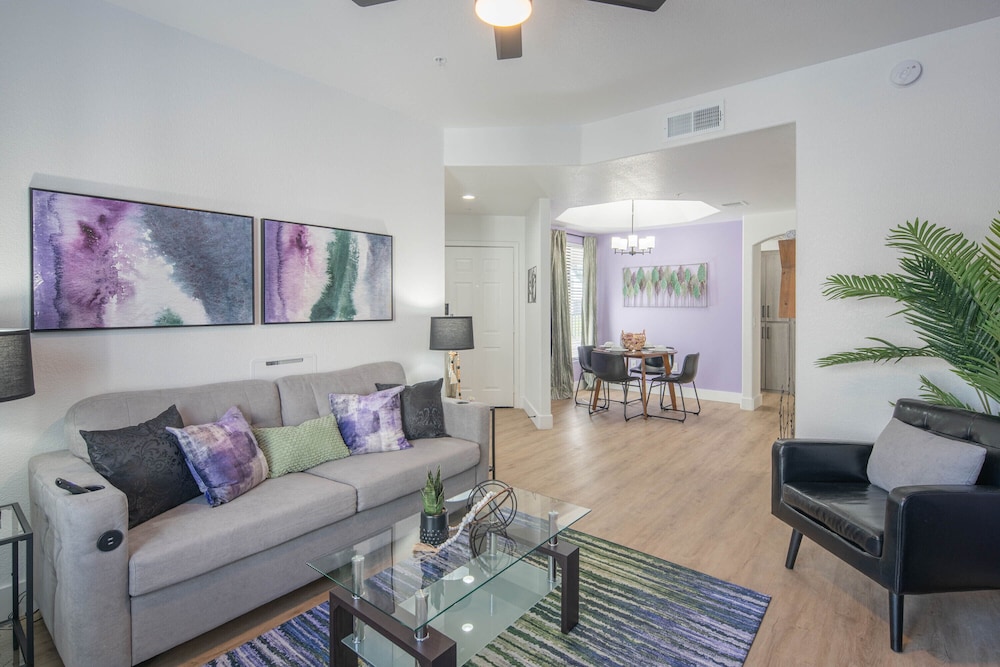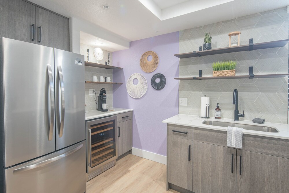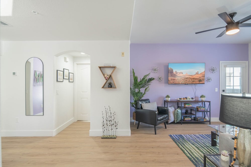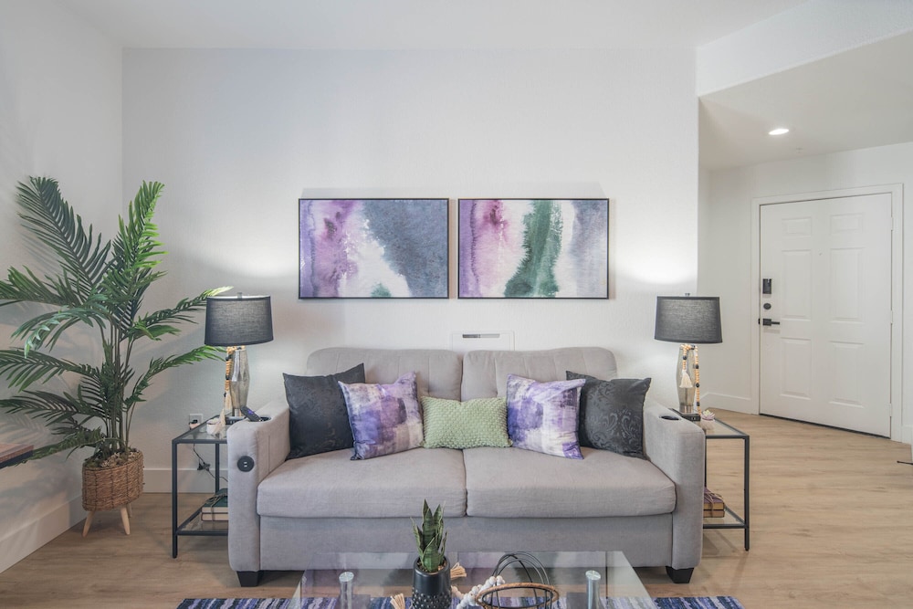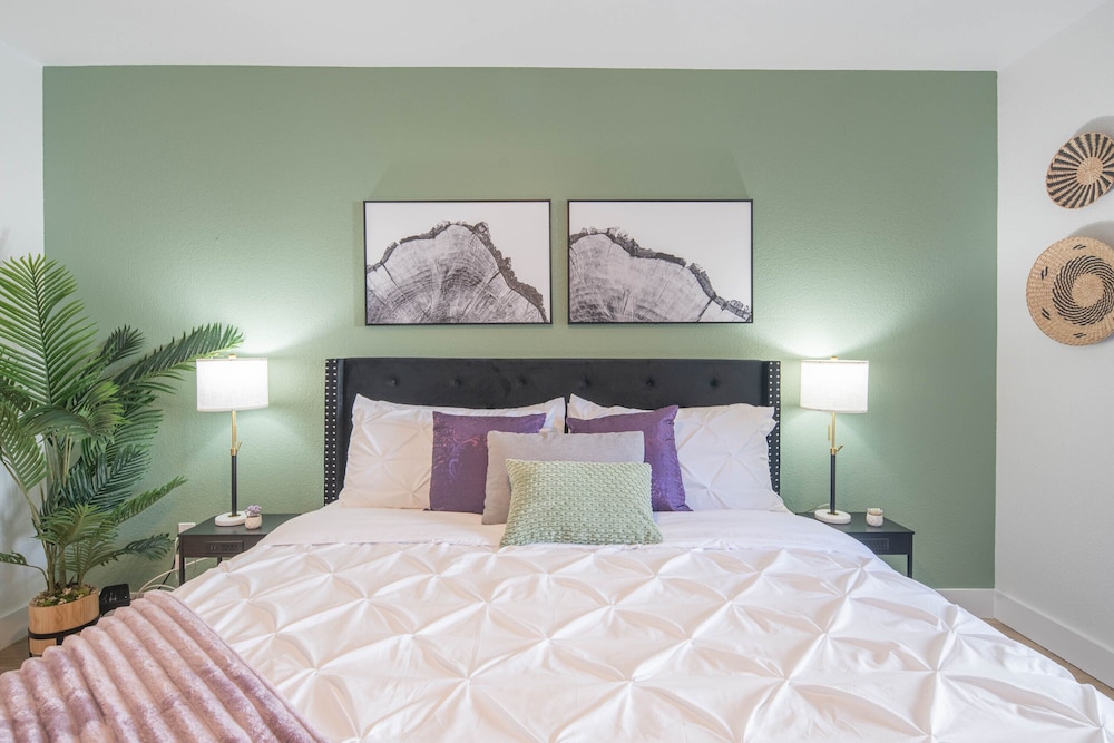 Individually decorated apartments with a full kitchen, memory foam bed, and private patio.