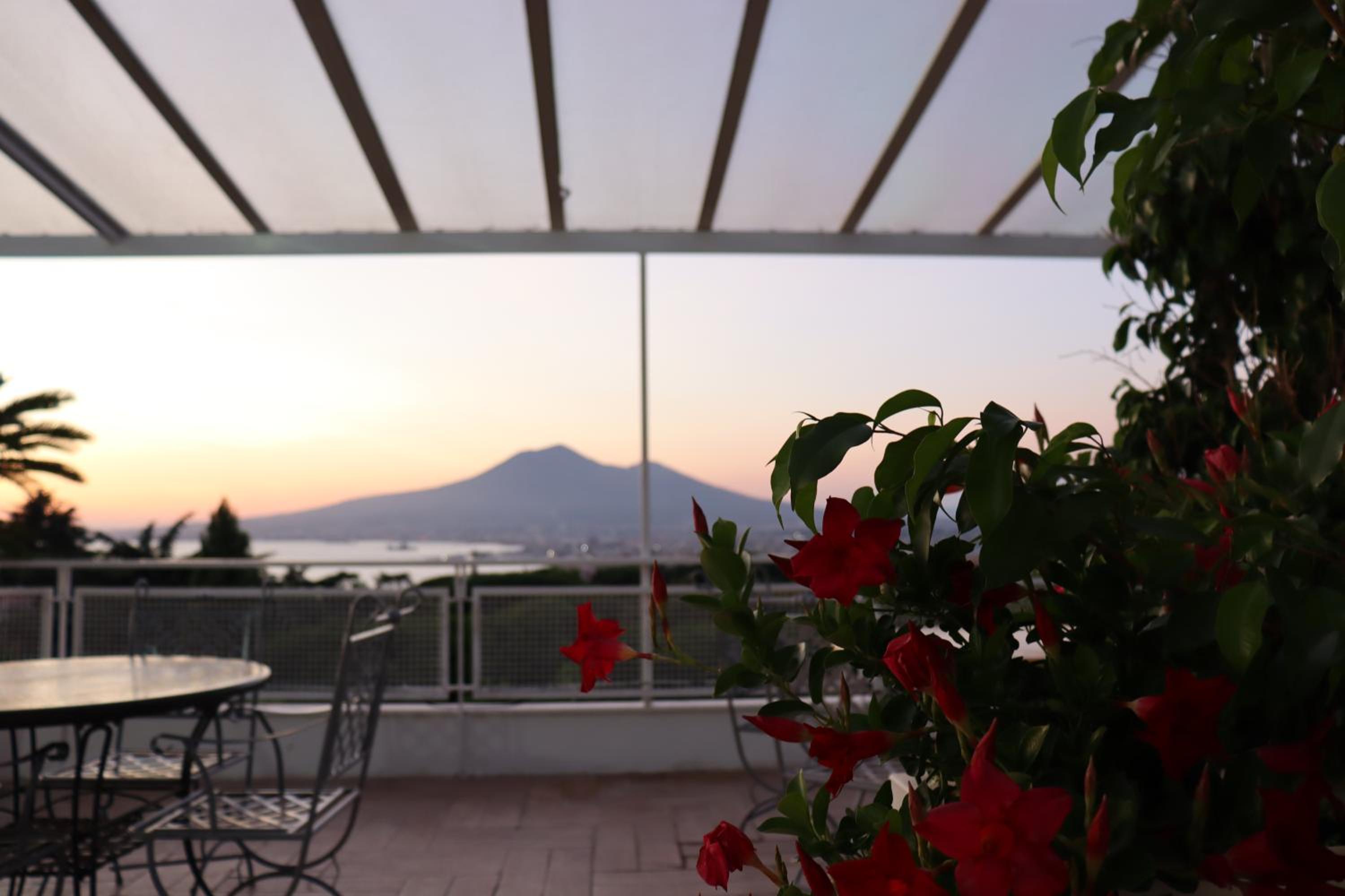 Piękny taras na piątym piętrze z widokiem na Wezuwiusza i z wygodnymi siedziskami dla gości. Teren hotelu bardzo urokliwy i kameralny z licznymi zakamarkami pełnymi roślinności, stoliczkami i fotelami. Obsługa w recepcji uprzejma i szybko reagująca.