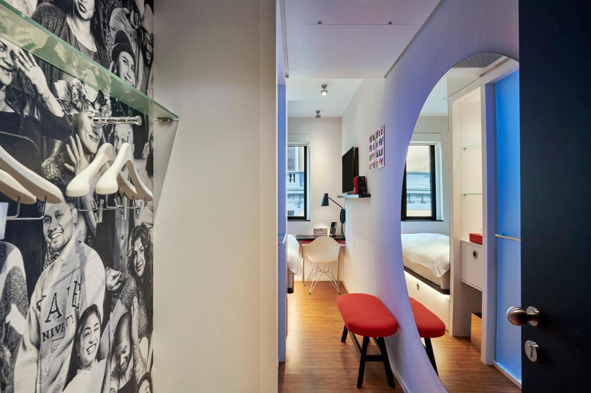 Nice, clean modern. Would’ve given 4 stars, but we had to crawl in/out of the bed from the bottom-literally no room on either side (buttressed between wall & shelving). Helpful staff, good location. Everything is controlled by iPad.