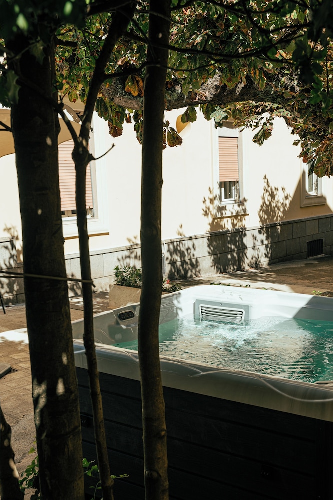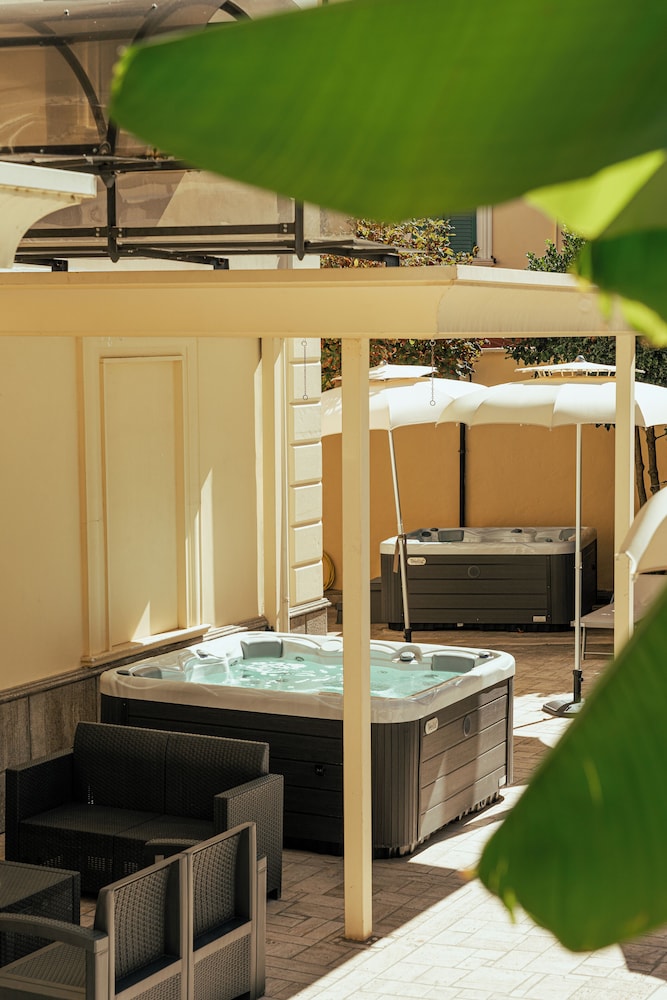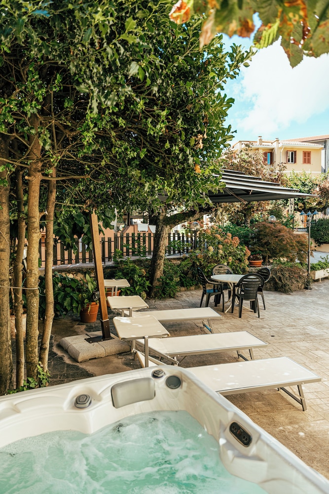 Al centro di Fiuggi Terme, l albergo e ben tenuto, semplice ma funzionale, spazio esterno con piscina, vasche idromassaggio sdraio ecc. Colazione prevalentemente dolce con prodotti buoni. Parcheggio auto. Buon rapporto qualita prezzo