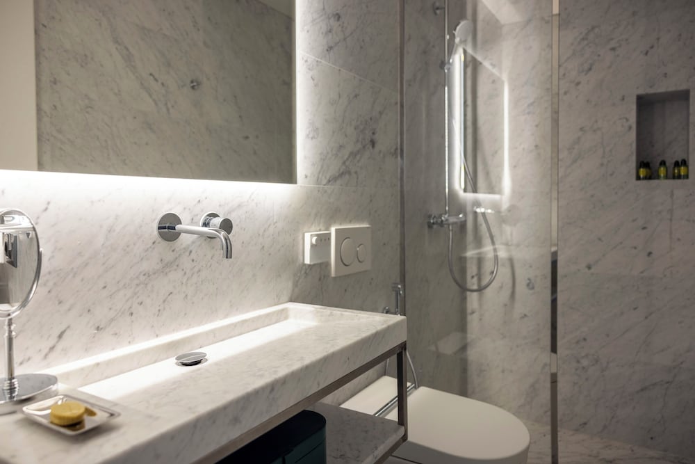 The hotel is lovely with some quirks , the bathroom are shaped oddly but love finishing touches . Great amenities in your room , great balcony and over all I have nothing bad to say about this modern hotel .