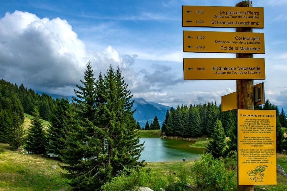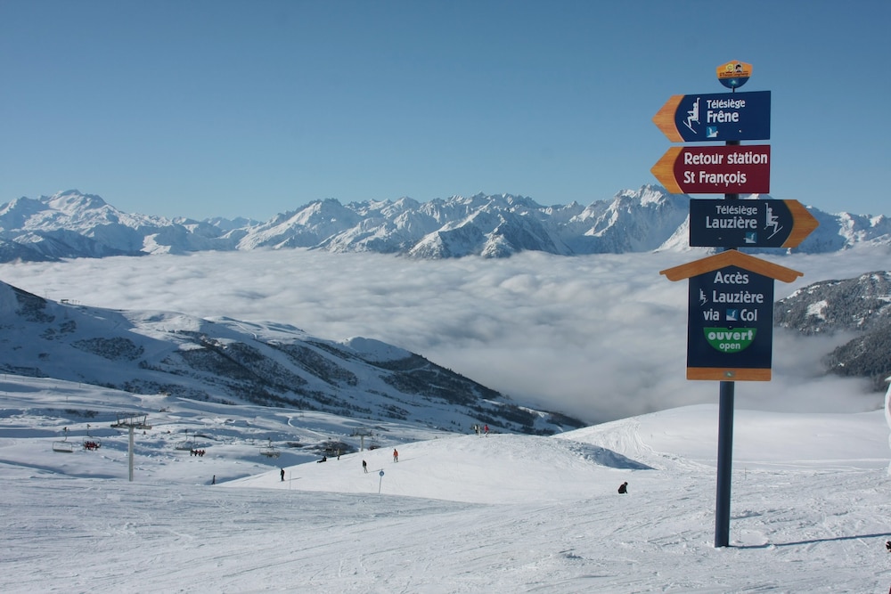 De plus, accès direct de l'hôtel à la piste de ski passant derrière, à côté d'une caisse de remontées mécaniques et du départ d'un télésiège, ainsi que de l'arrêt de la navette gratuite desservant l'ensemble de la station: pas de voiture à prendre !