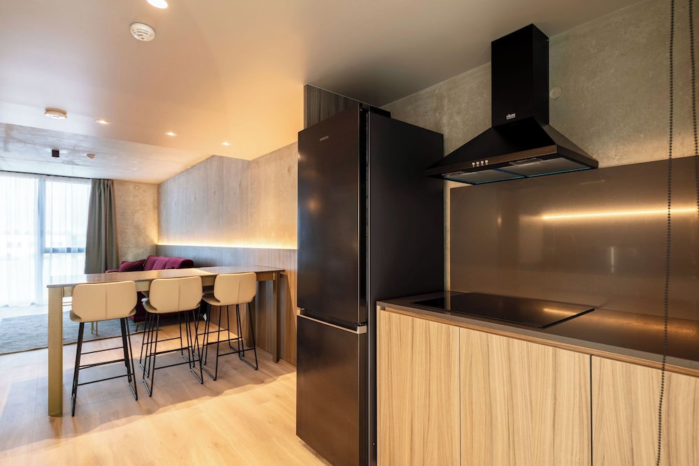 The room itself was nice and clean, although cosmetically it was unfinished. The kitchenette was great and they supplied most things for example a fridge, dishwasher, electric hob, kitchen utensils and a microwave. Tea/coffee machine was standard but the annoying thing was no water bottles. They had one water dispenser each floor which unfortunately was as far away as it possibly could be from our room.