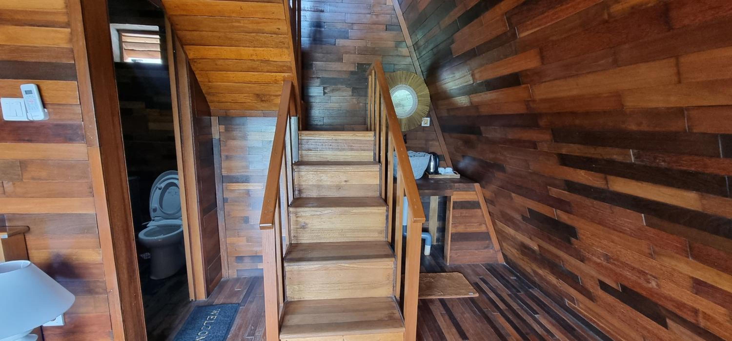 Camera molto sporca, la stanza superiore addirittura aveva il letto a terra e accanto era pieno di bisogni dei geki.