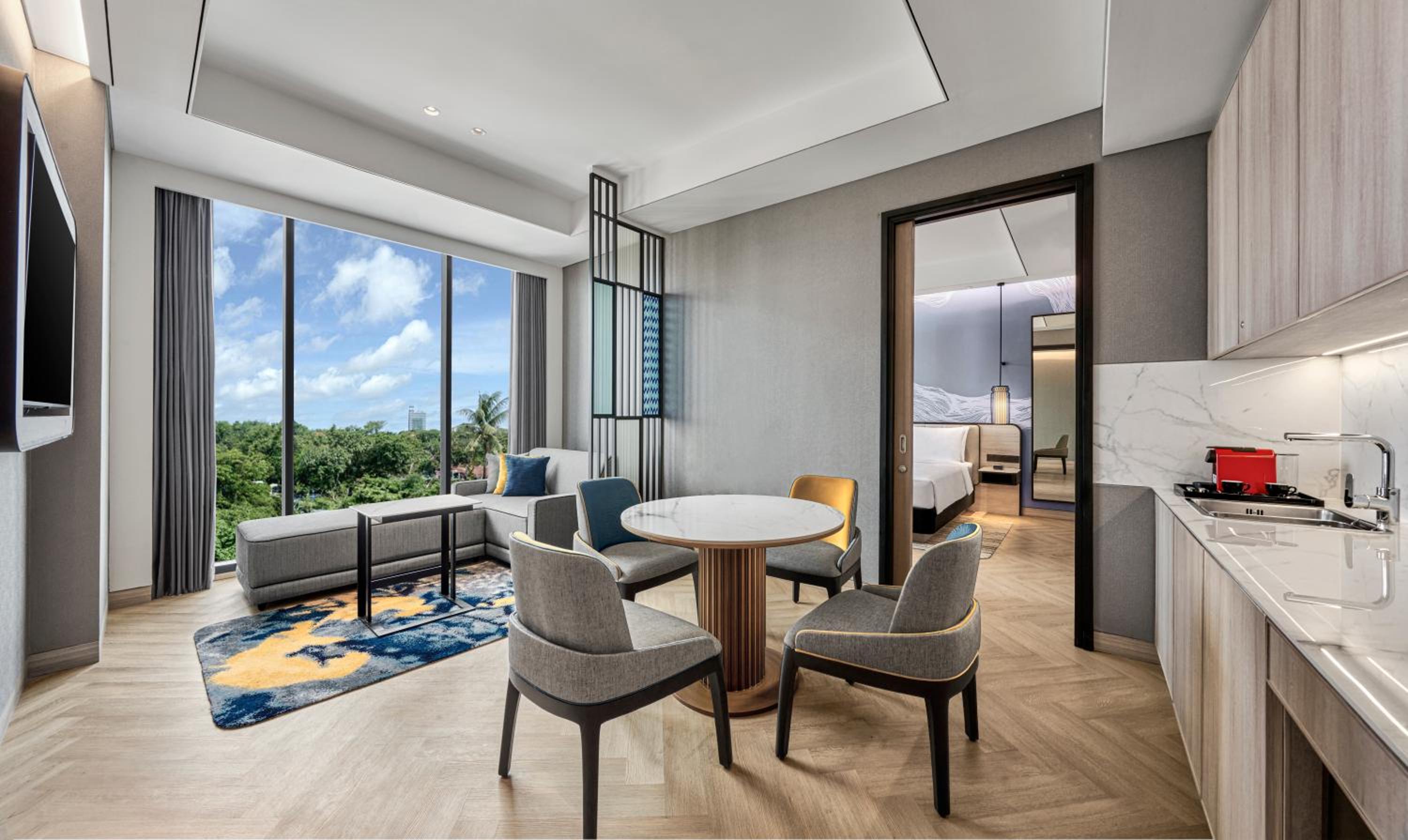 Luxurious Amenities: Enjoy the outdoor swimming pool, fitness centre, and a trendy on-site bar and restaurant.