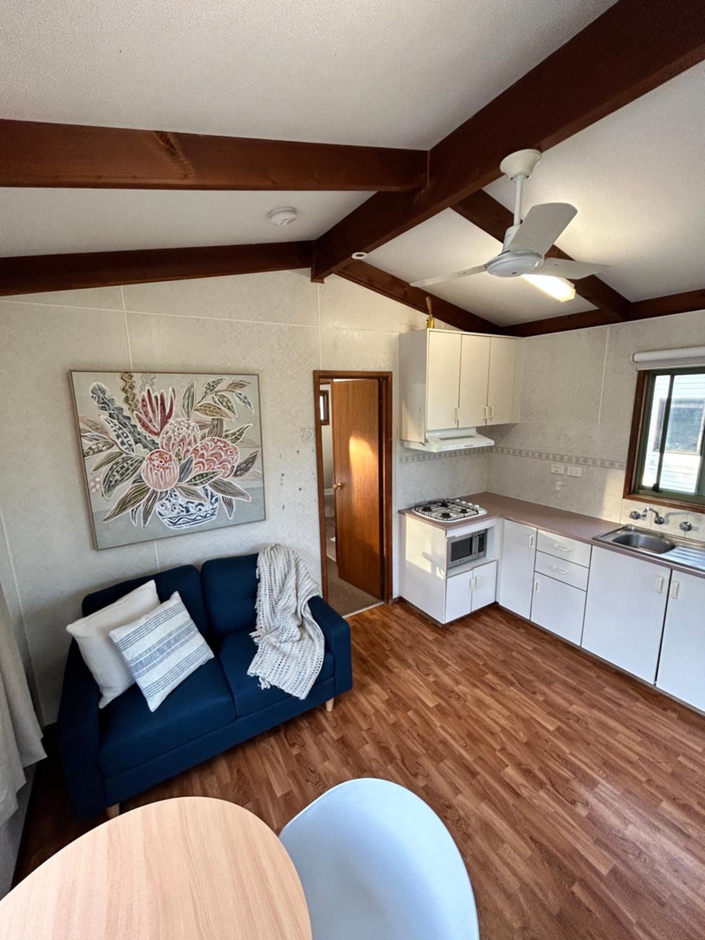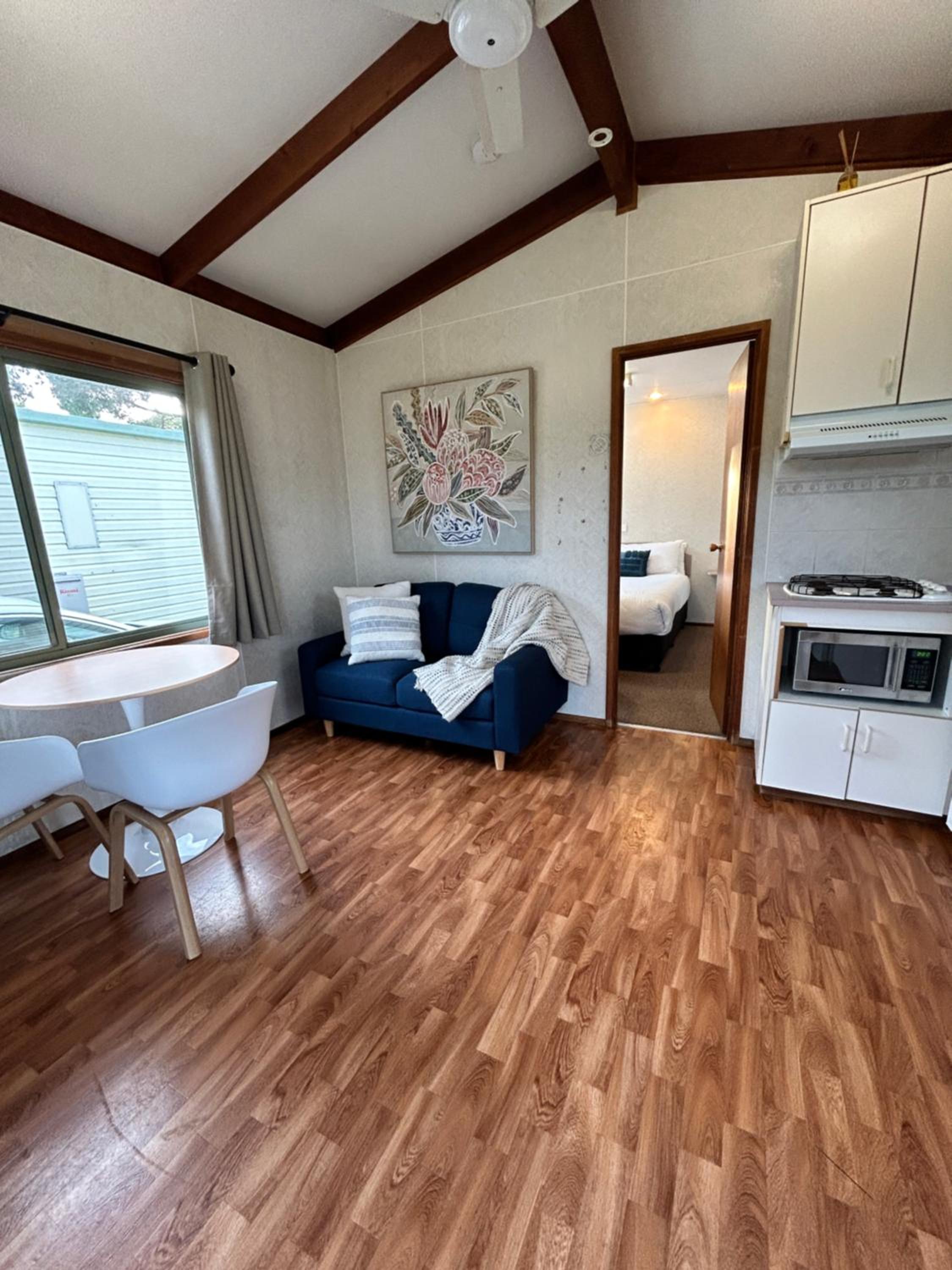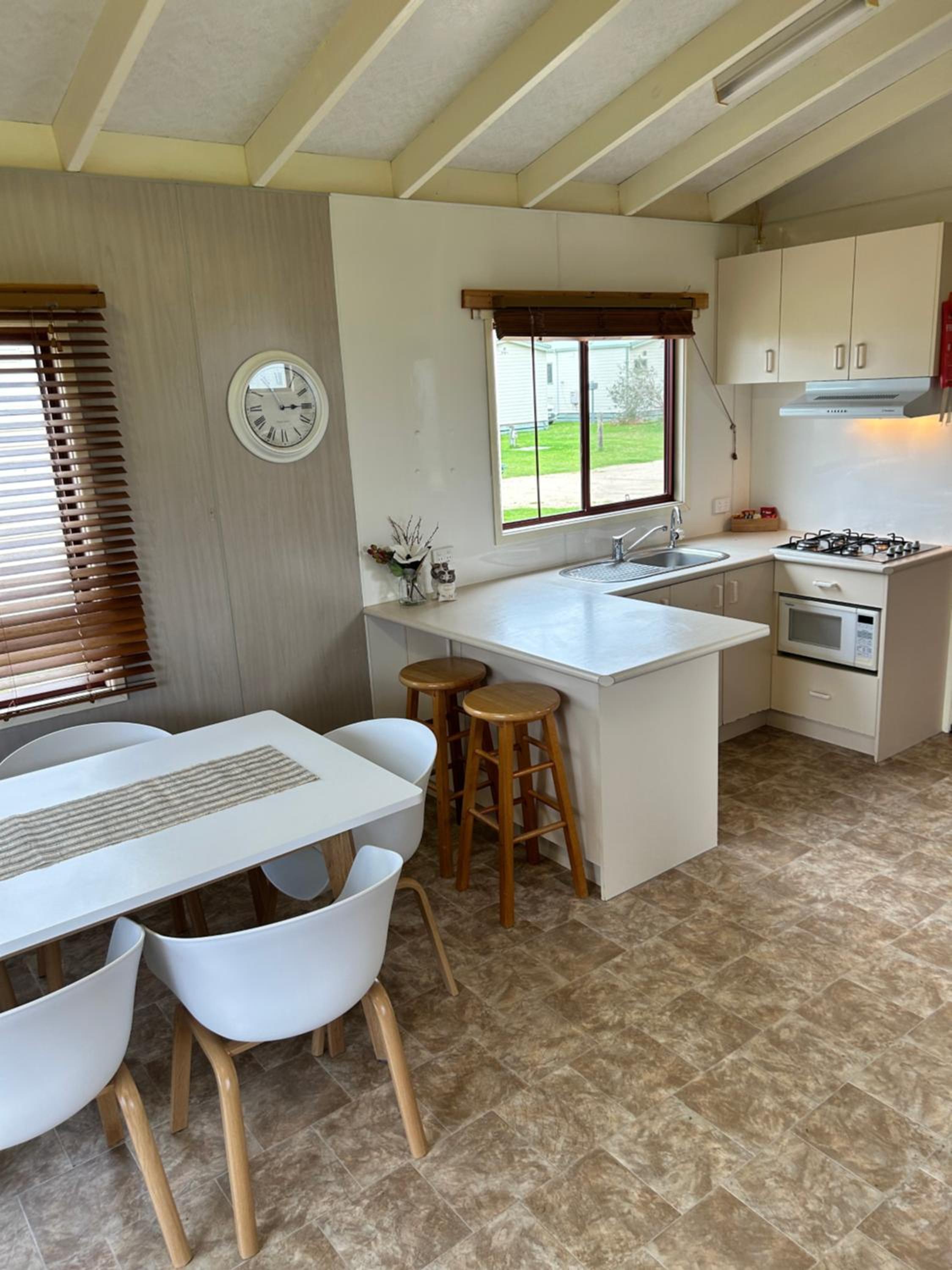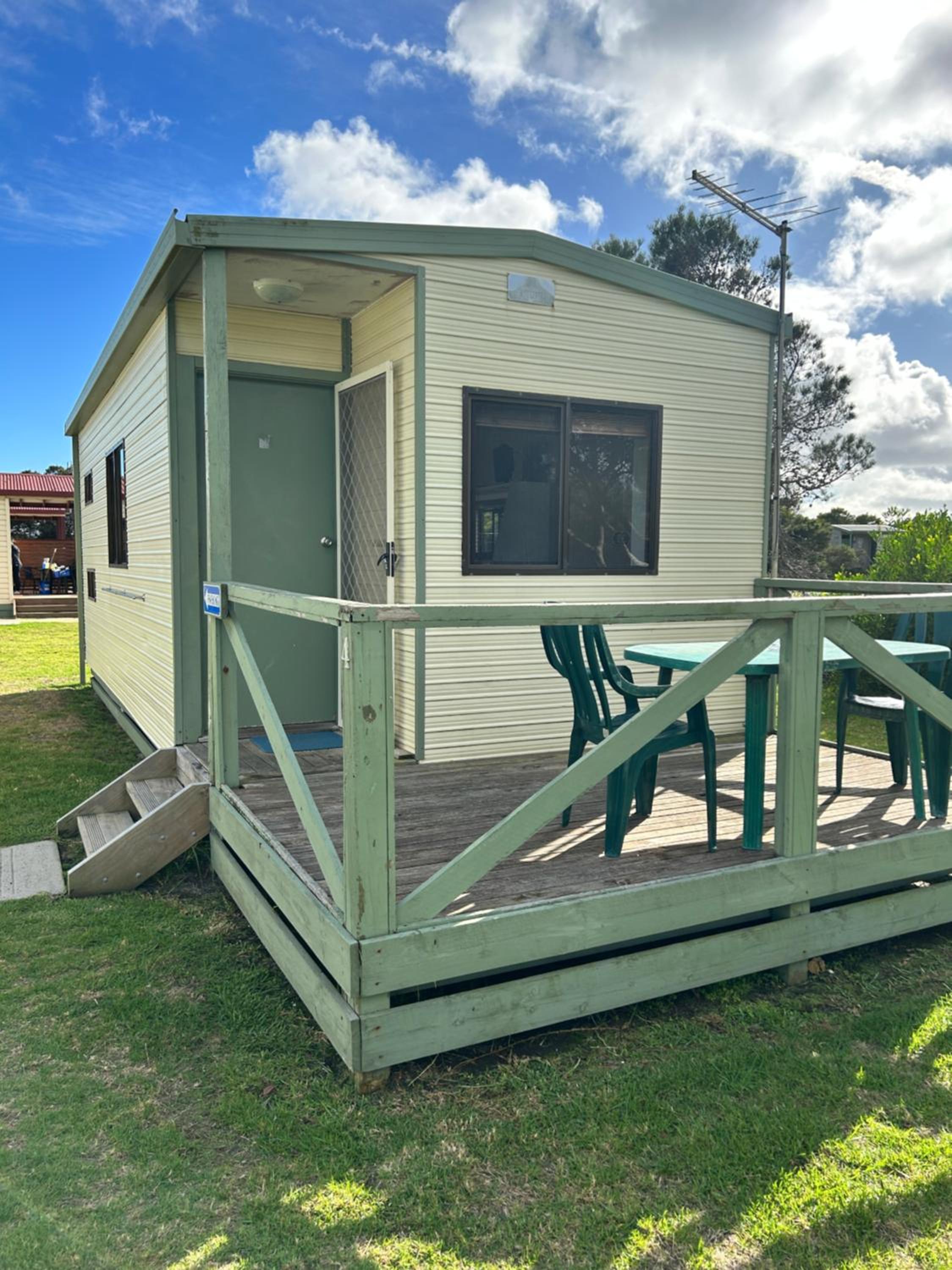Beautiful location. Private unit with no joining walls with others. Free parking. Adequate kitchen items. Quiet park though very crowded. Felt safe overnight. Laundry facility on site.