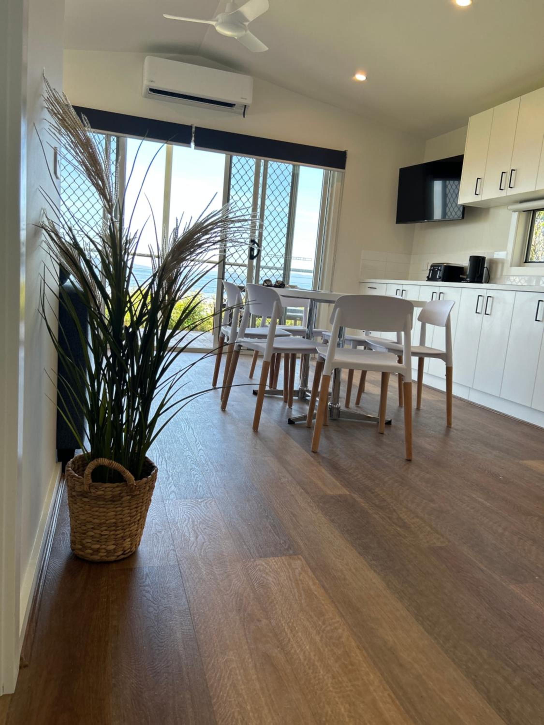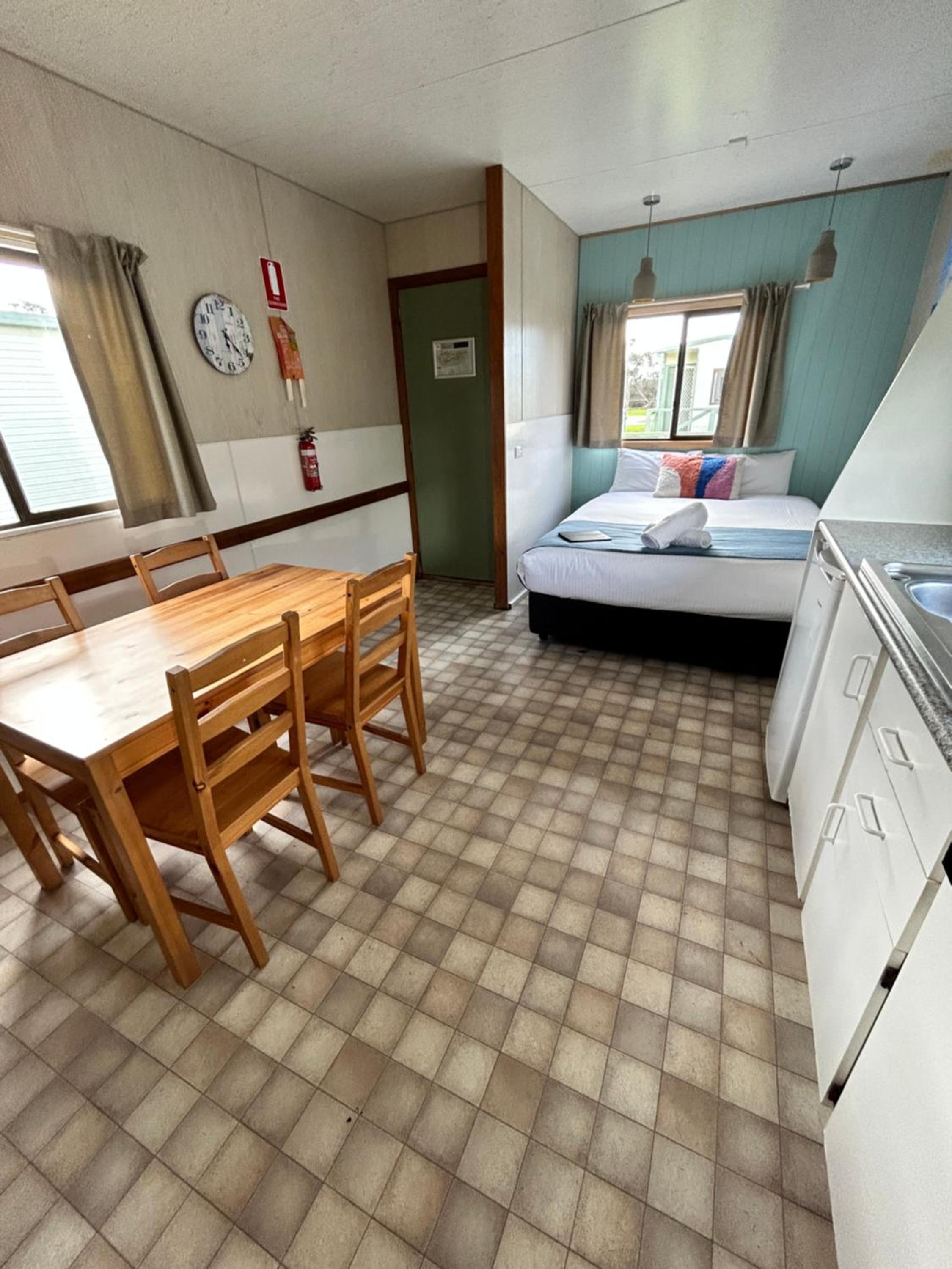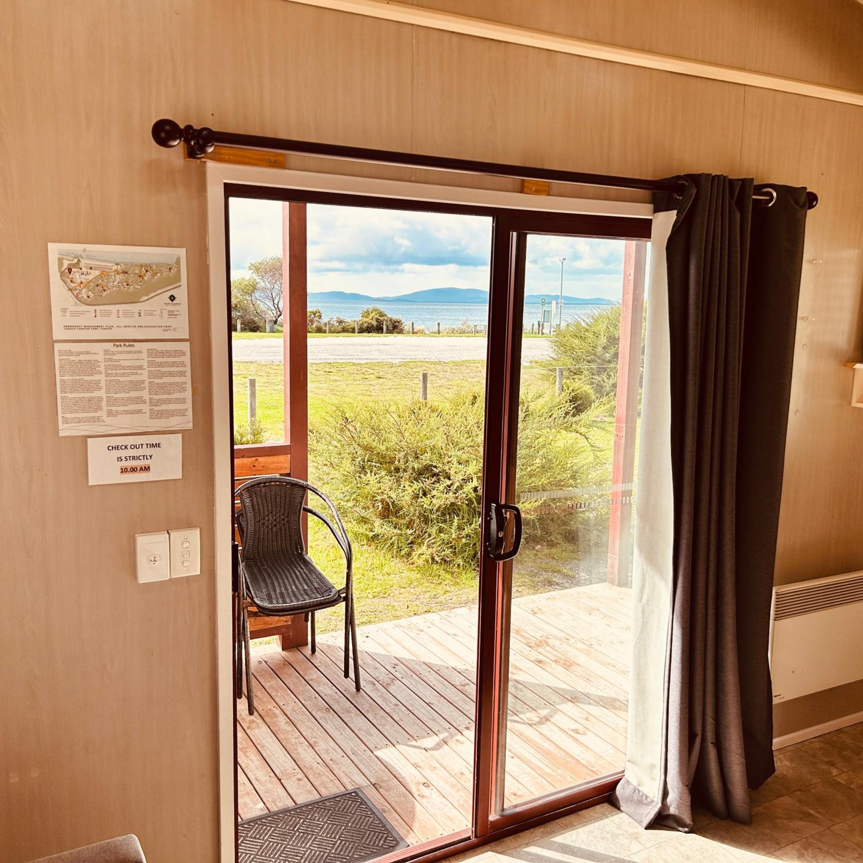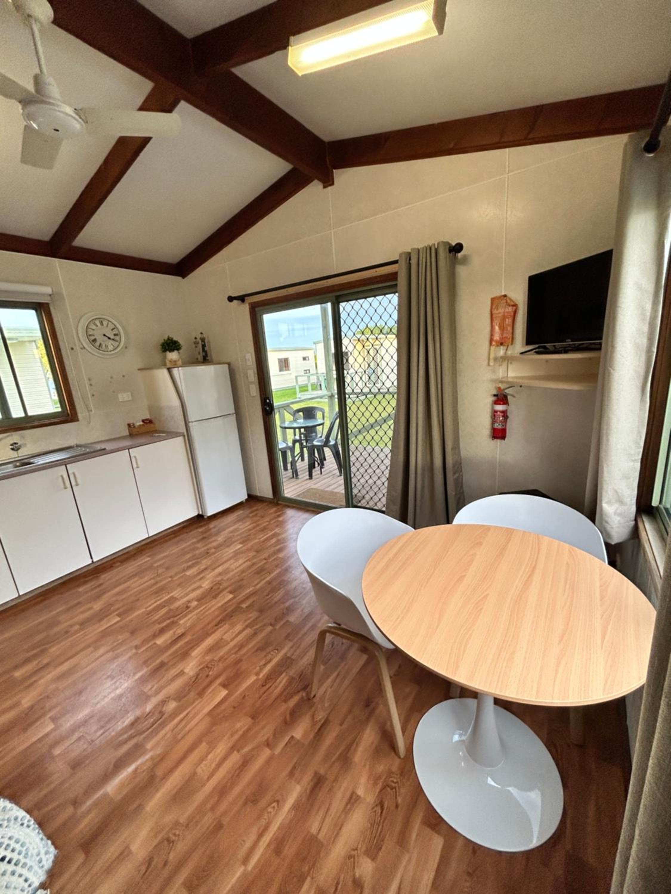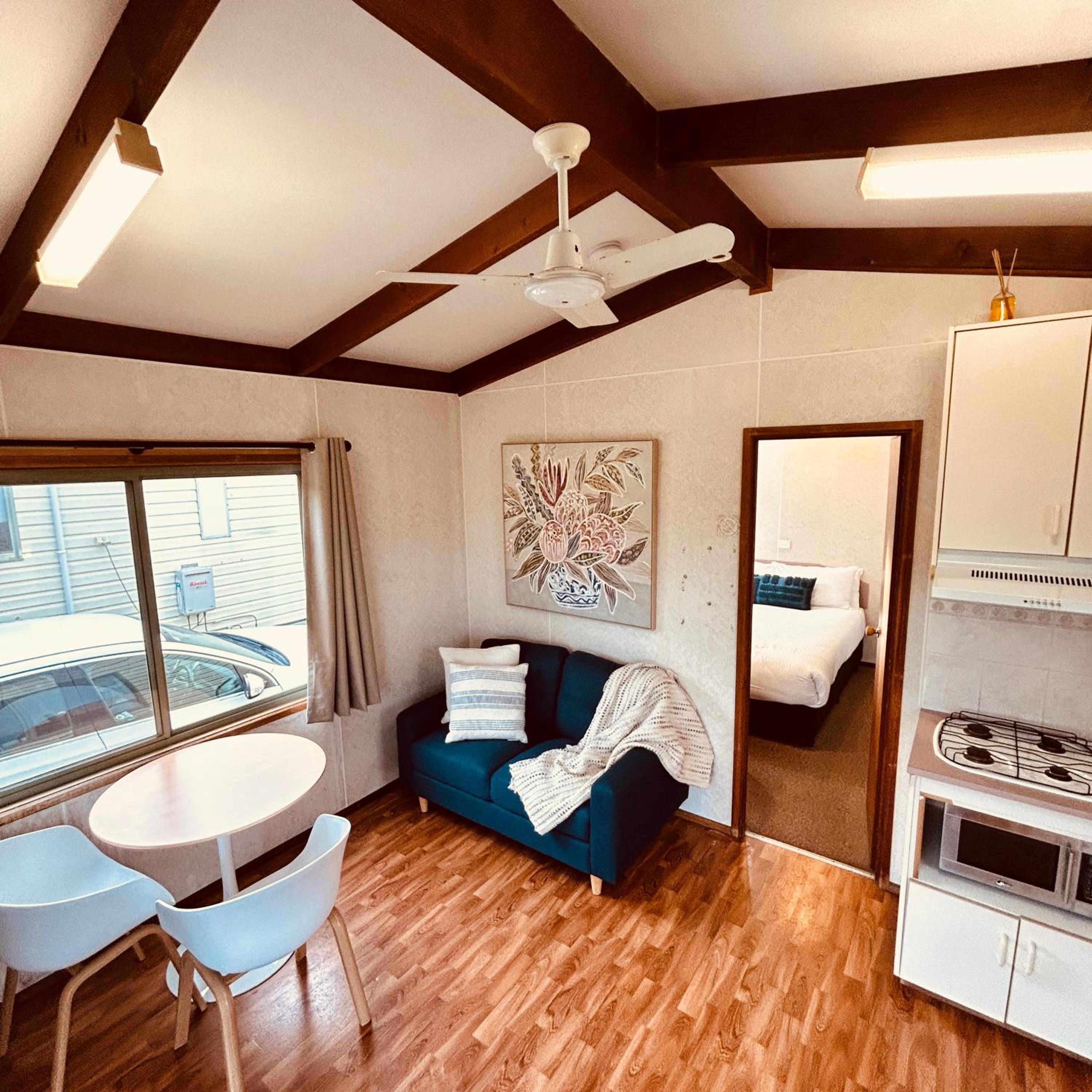 Beautiful location. Private unit with no joining walls with others. Free parking. Adequate kitchen items. Quiet park though very crowded. Felt safe overnight. Laundry facility on site.