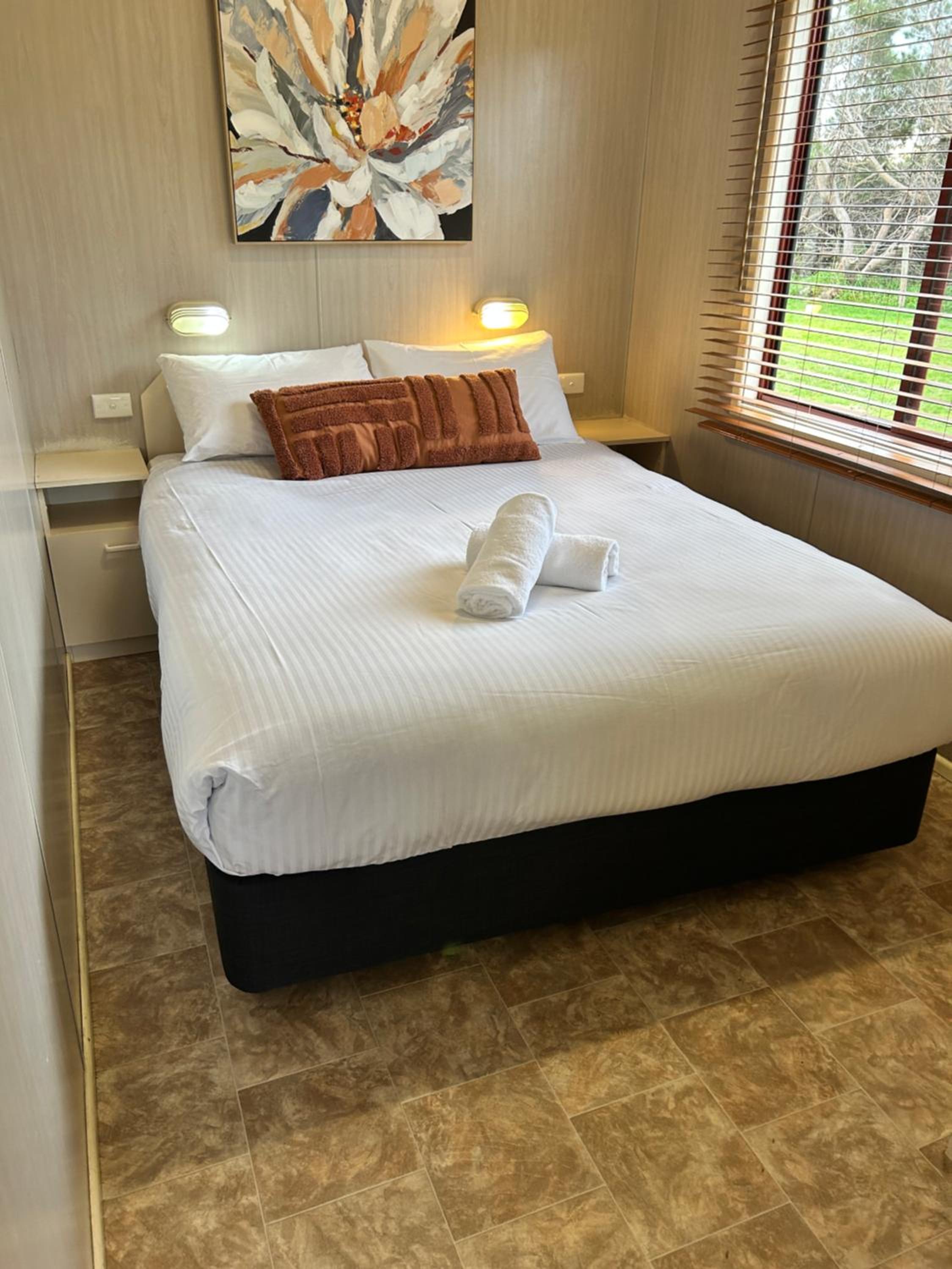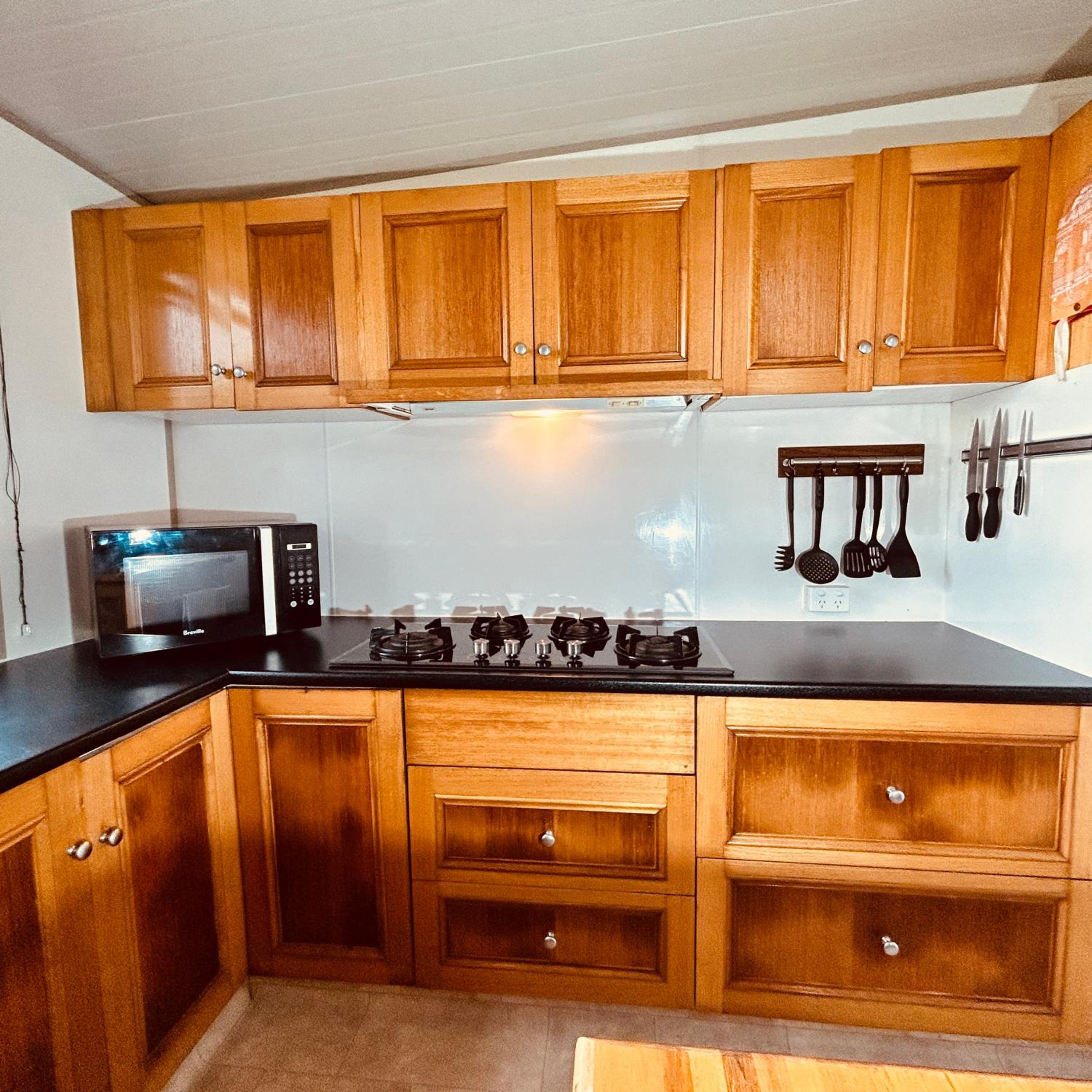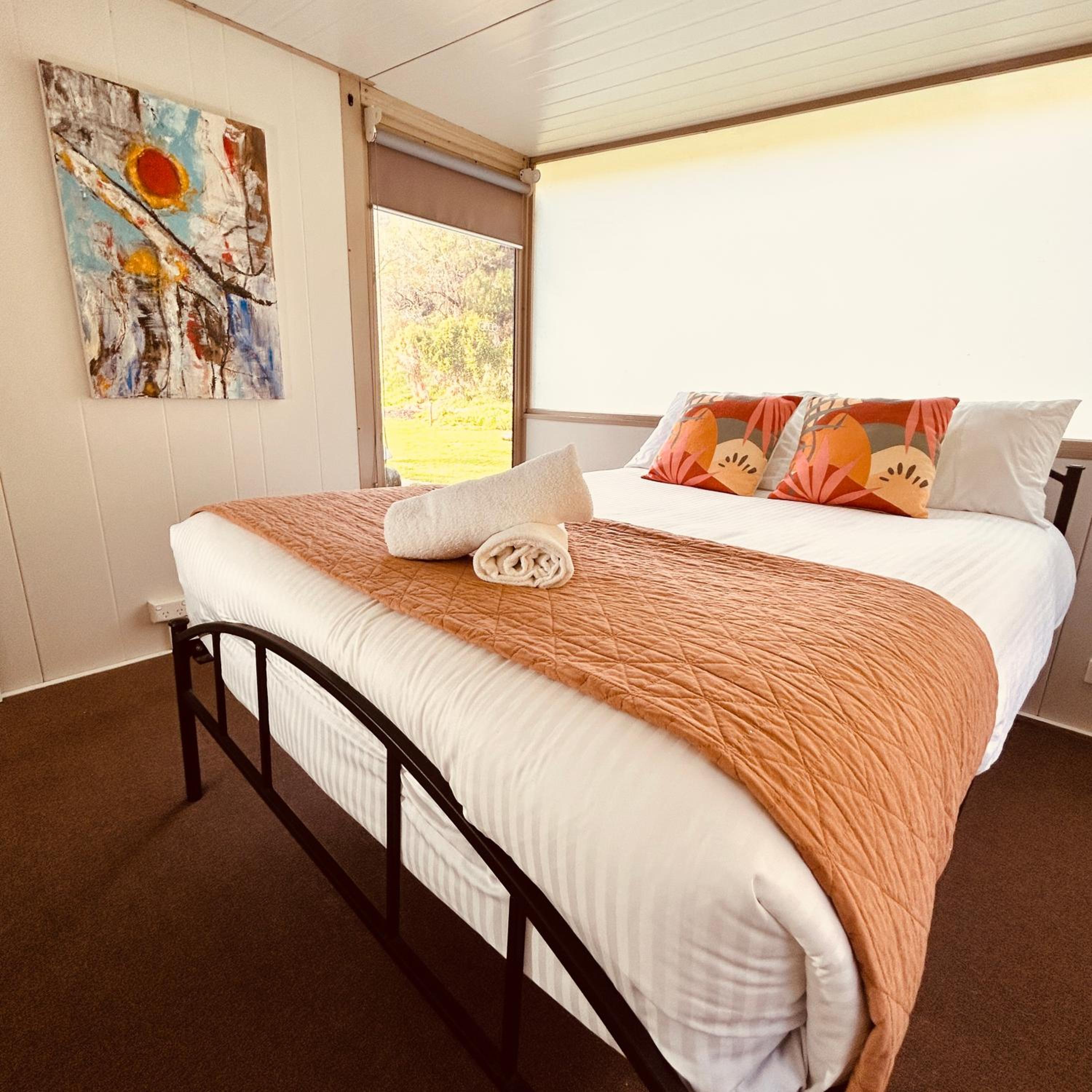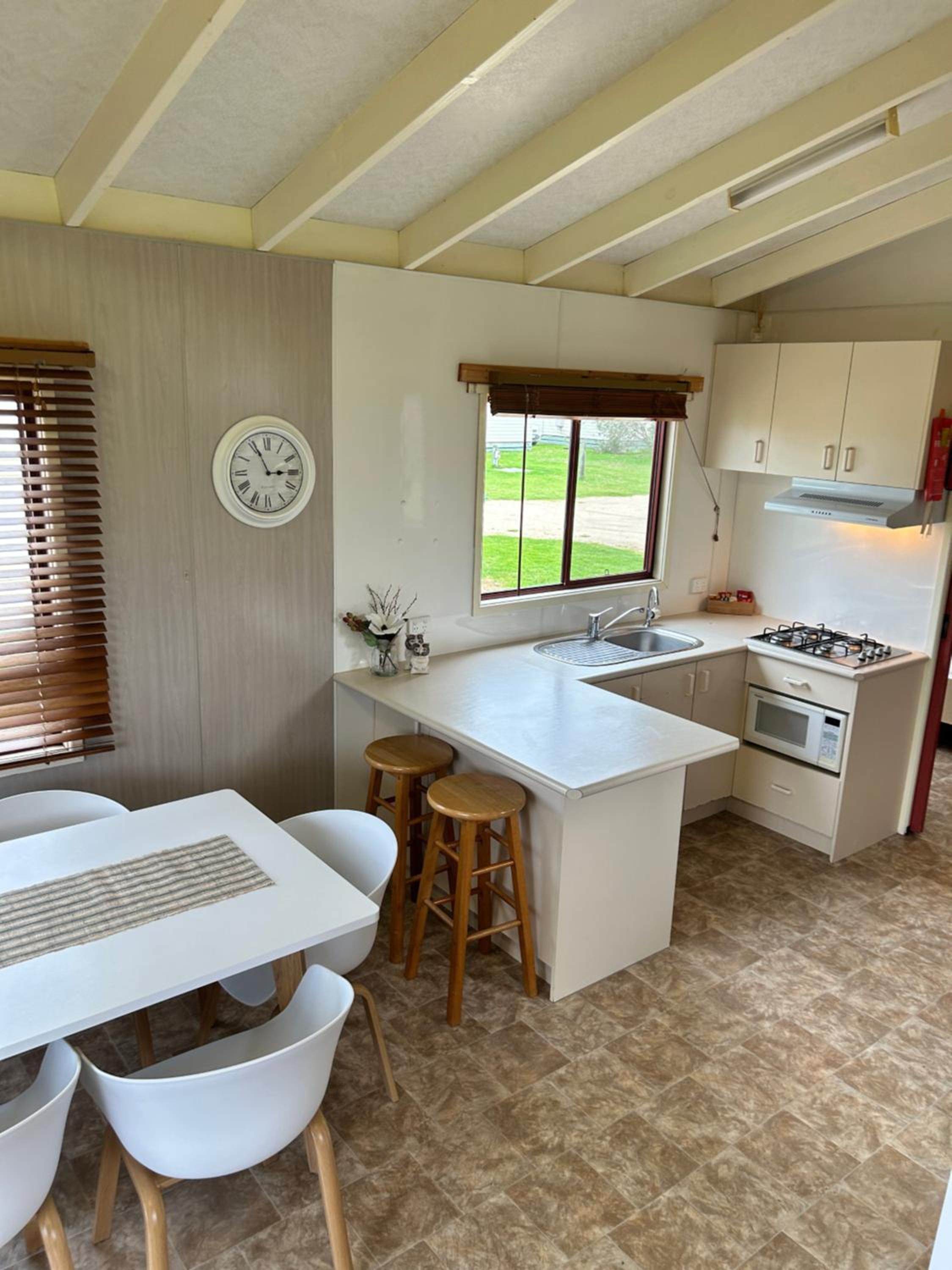 Beautiful location. Private unit with no joining walls with others. Free parking. Adequate kitchen items. Quiet park though very crowded. Felt safe overnight. Laundry facility on site.