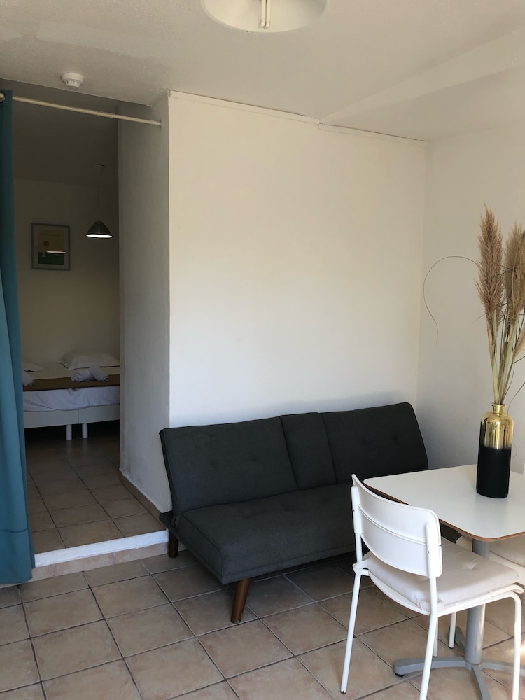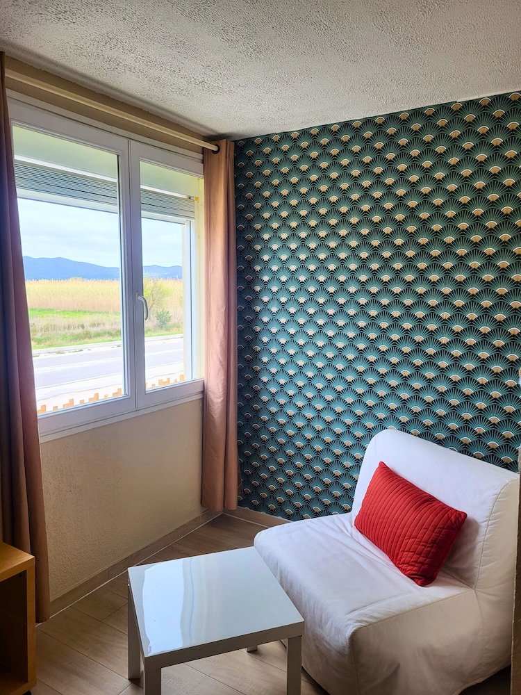 Notre chambre nous a beaucoup déçu. Moquette d un autre âge qui gondole, meubles bon marché cassé, literie qui s effiloche sous un lit, pas de porte ni de rideau de douche, donc inondation du coin toilette assuré. Pas de cafetière ni de bouilloire, pas de téléphone dans la chambre, terrasse non entretenue et clous qui dépassent des poteaux à l extérieur. Attention aux enfants, c est très dangereux. Téléviseur miniature.