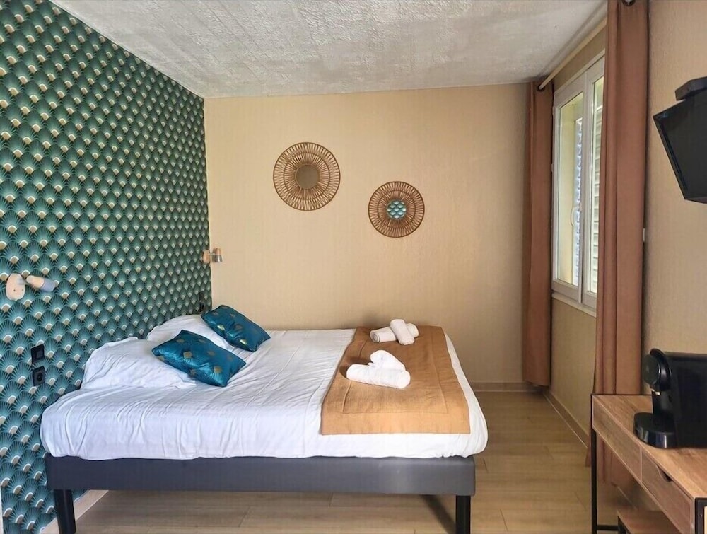 Chambre vieillotte crépi sur plafond très grossier, TV petit écran difficile à faire fonctionner avec démodulateur (2 télécommandes)WC très étroit sans VMC, volet électrique nonfonctonnel. Distributeur de mouchoir vide depuis le début, plus de savon liquide,serviette de douche non renouvelé Soirée très bruyante jusqu’à 2 heure du matin sans avoir été prévenu. Petit déjeuner médiocre À fuir