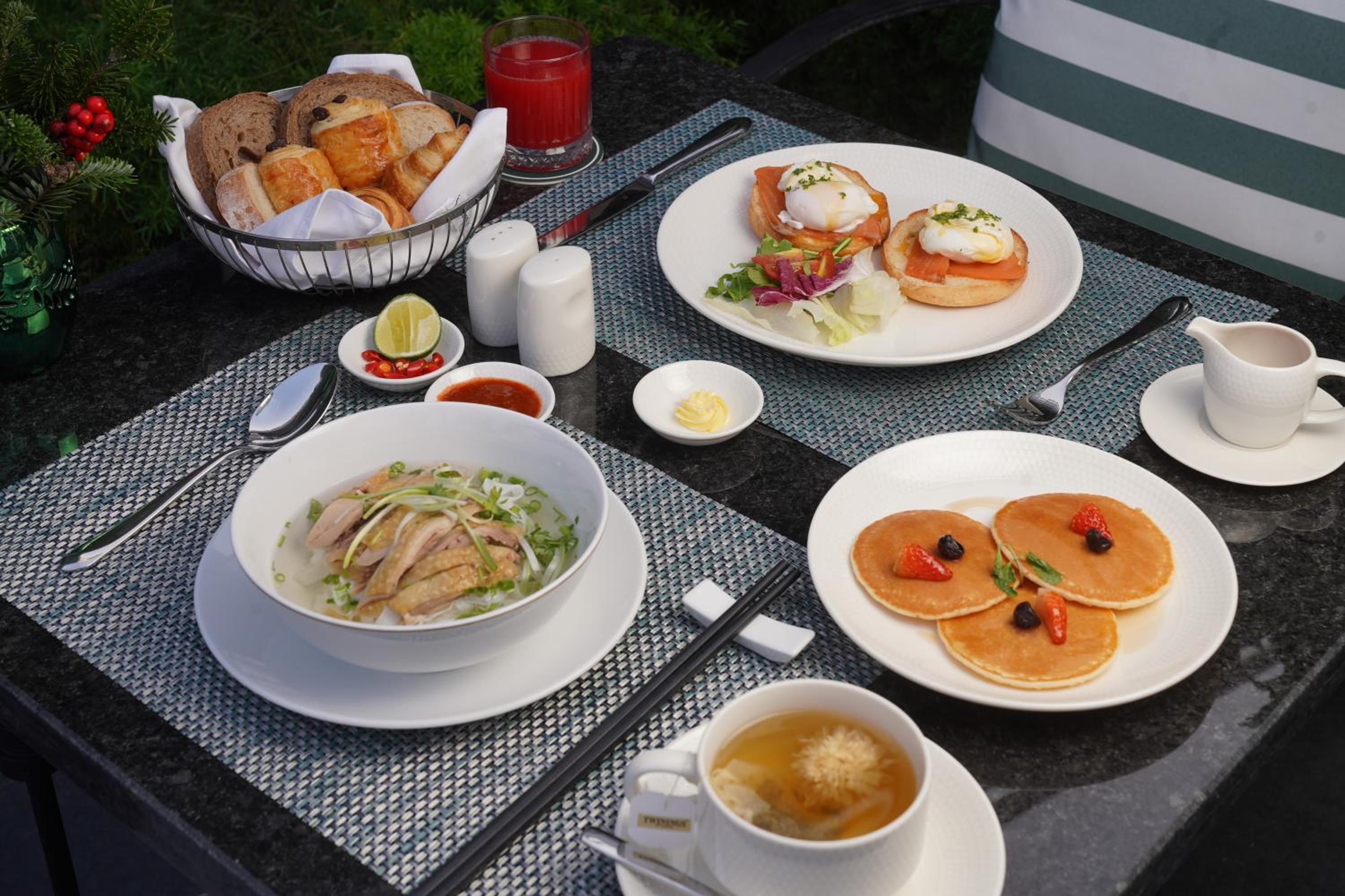 Set in the expat/foreign embassies area and the property feels like a quality sanctuary on the lake. Decked with beautiful flowers the check in staff were helpful and meticulous. Quickly changed my bed from two doubles to a king. The welcome drink was a nice touch.
