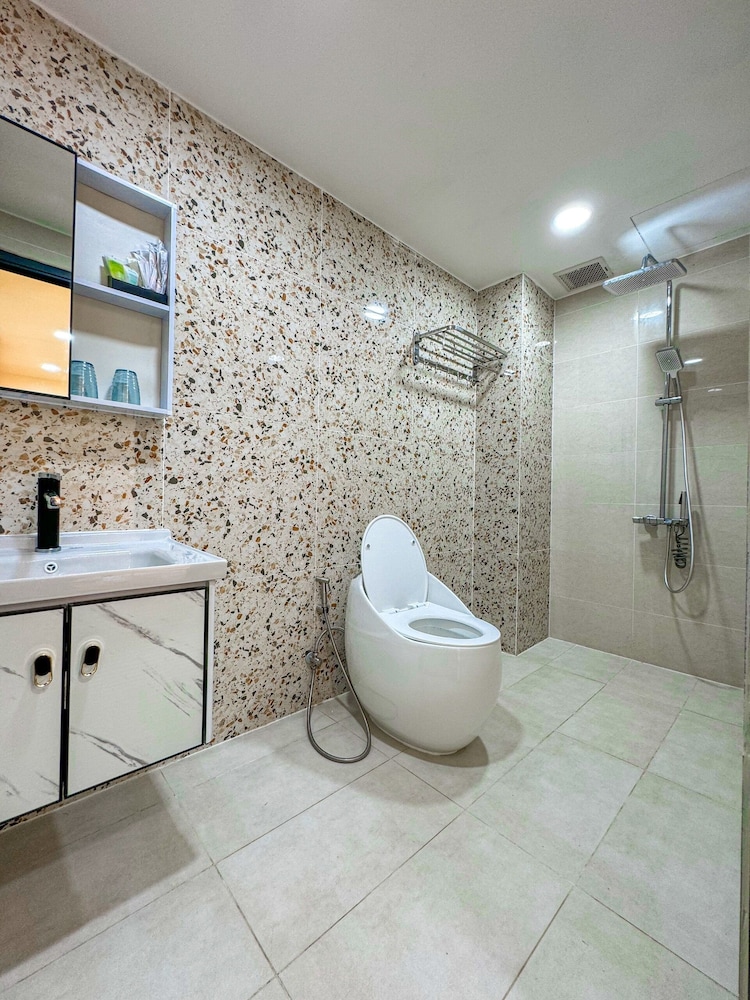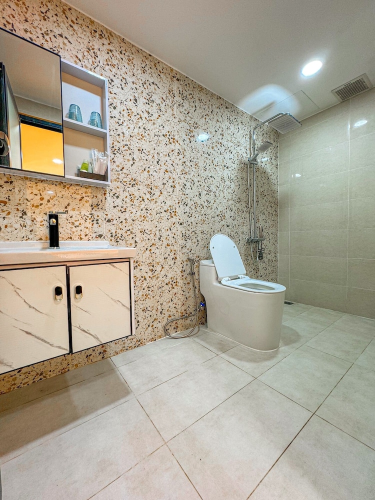 Payment is cash only for foreigners (applies to most if not all places on the island). Beachfront location but no sand (only concrete) and behind a sea wall. No fridge, no wifi for half the stay (2/4 nights), no TV, toilet paper not always replaced (without asking). Hot water not always available for shower.