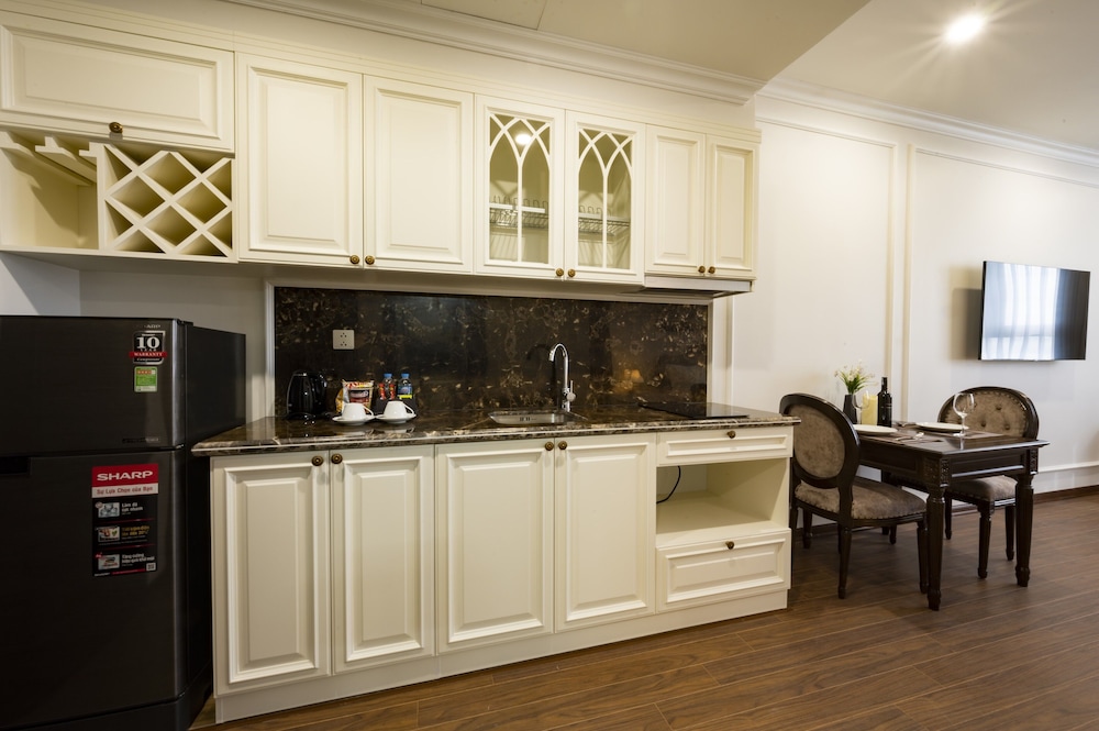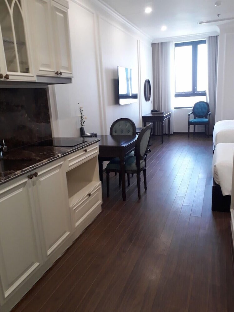 Absolutely amazing hotel. Looks as nice on the inside as it is on the outside. Check in was very simple and no deposit was required. The room was very clean and spacious as we had two bedrooms and a dining area. There was also a washer/dryer, but we had to buy our detergent. The closest store was a bit away fyi. Toiletries had quite some options. Our favorite hotel thus far in our two week trek through Vietnam.