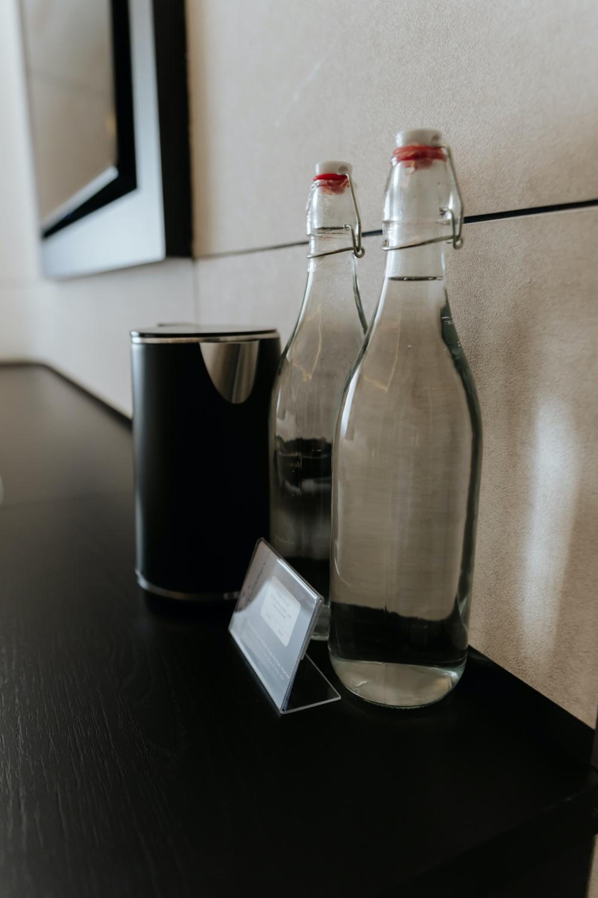 The unusual arrangment of the room which worked great for what we needed. Water station in the hallway. Perfectly working AC and firdge.
