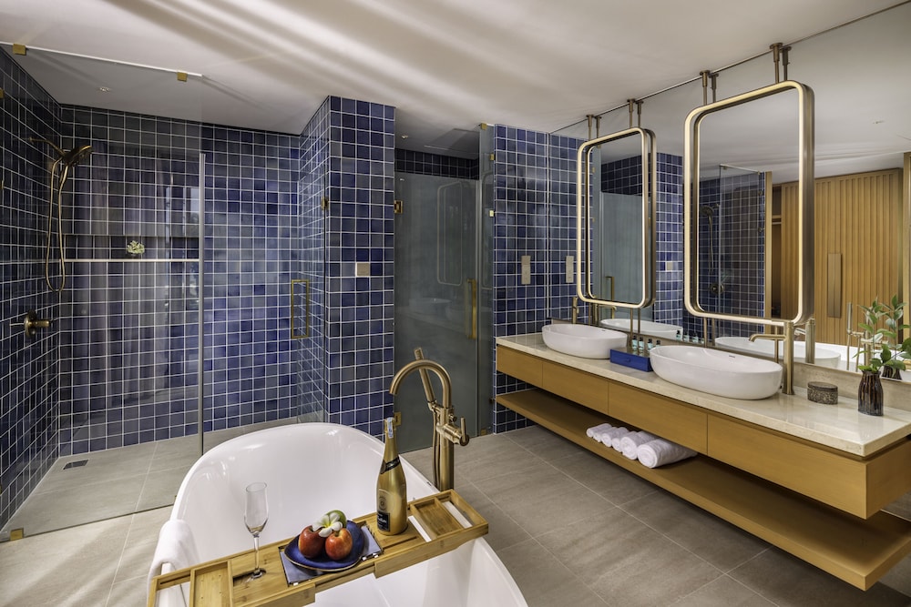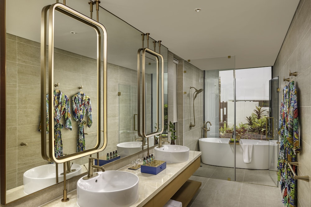 ヴィラに宿泊しました。広さも間取りも素晴らしかったです。問題はシャワーの排水部分が詰まっていて、毎晩水浸しになってしまったこと。リビングの天井の扇風機も故障して動きませんでした。スタッフについては、清掃スタッフはしっかりと仕事をしてくれていました。フロントのスタッフは対応の良い人と塩対応の人、両方がいました。朝食会場はヴィラとホテル棟の宿泊者で分かれていました(ヴィラ宿泊者は両レストランを利用可能)。レベルは悪くなかったです。ヴィラ宿泊者のレストランのみにあったのは生ハムとスムージー各種で少し差をつけているようでした。
