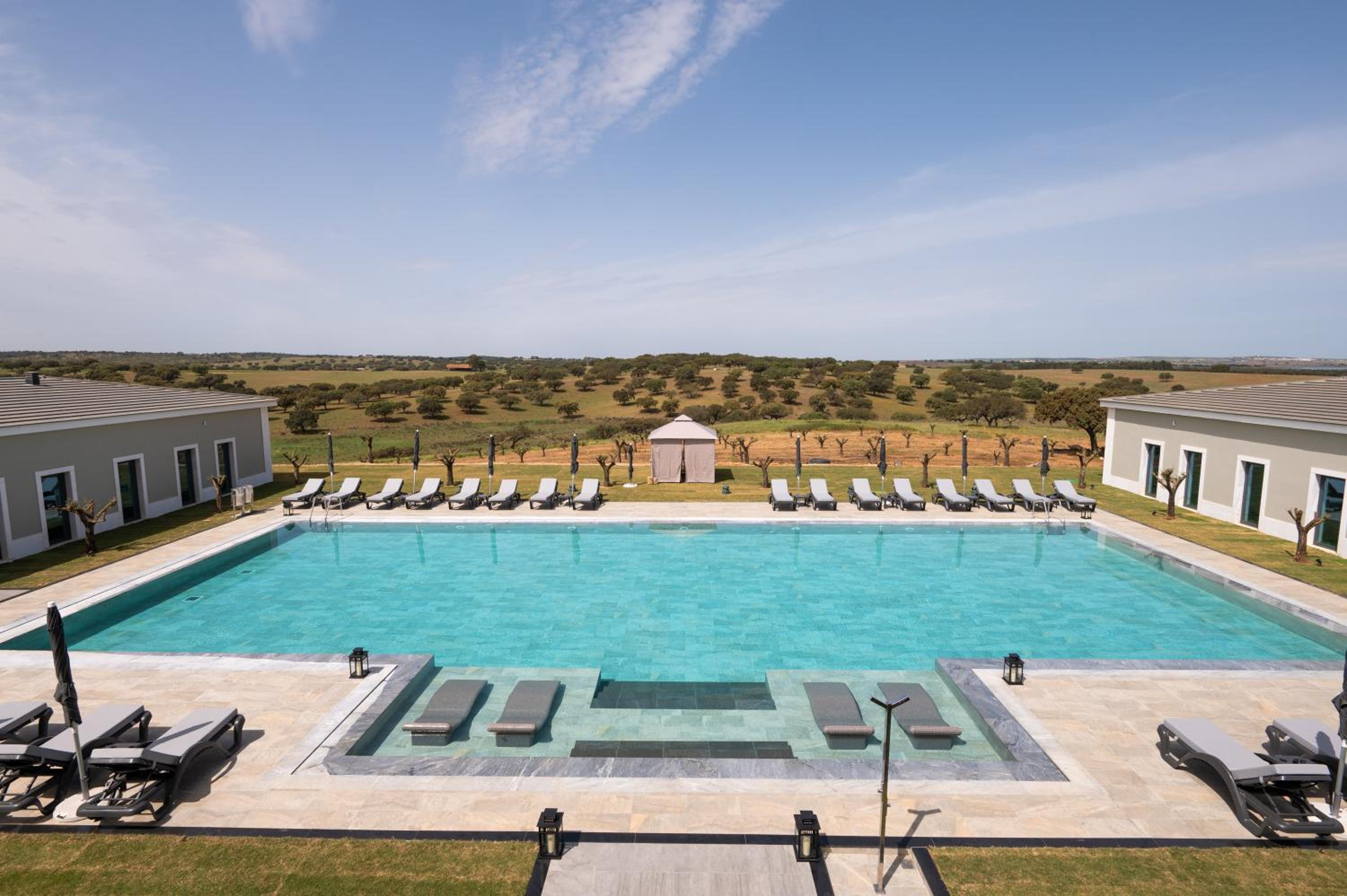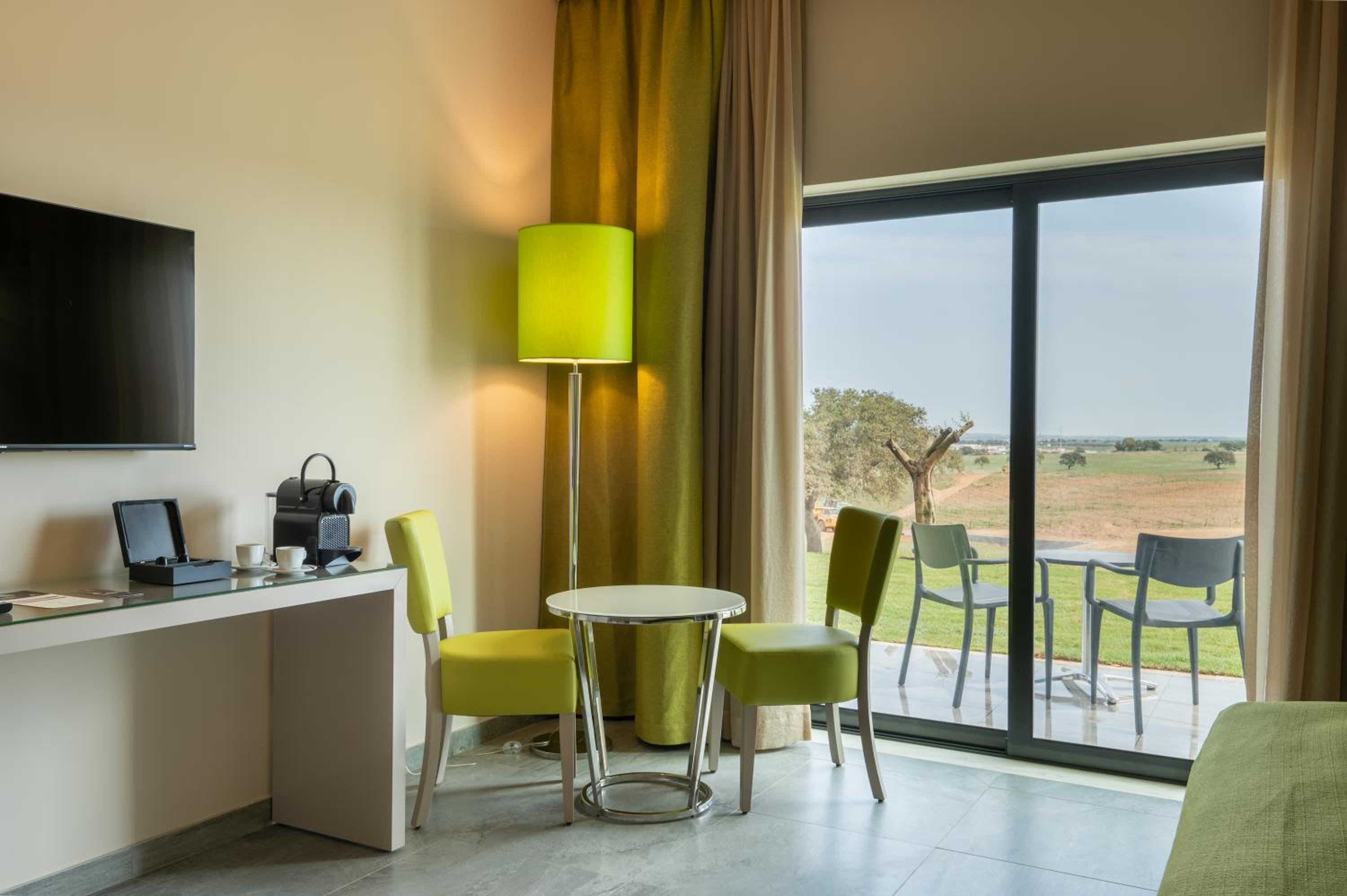 Fabulous location, set in vineyards and olive groves. Ended up in one of the suites overlooking the pool, which was wonderful. Restaurant menu was varied and the food was good. Great staff, who also arranged a visit to the Santa Vitoria wine cellars for us.