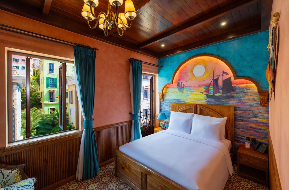 The hotel boasts a unique decor. I would not call it Venice, but closer to Spanish. Breakfast is small, but quite delicious. The hotel, similar to the nearby Hilton La Festa and other boutique hotels on this trip, is on the beach. However, it is not recommended to swim in this beach due to the chemicals from nightly firework displays. You may have a rash afterwards, the hotel says. There's a small swimming pool/Jacuzzi/lounge on the back side of the hotel - with an ocean view, overlooking the kissing bridge. The staff, esp. the front desk, are all very friendly and attentive. The hotel offers free airport shuttle and also free rides to bus stations to get to Khem Beach, the best beach on the island in summer. Khem Beach is about 2 miles away, with better dining options.