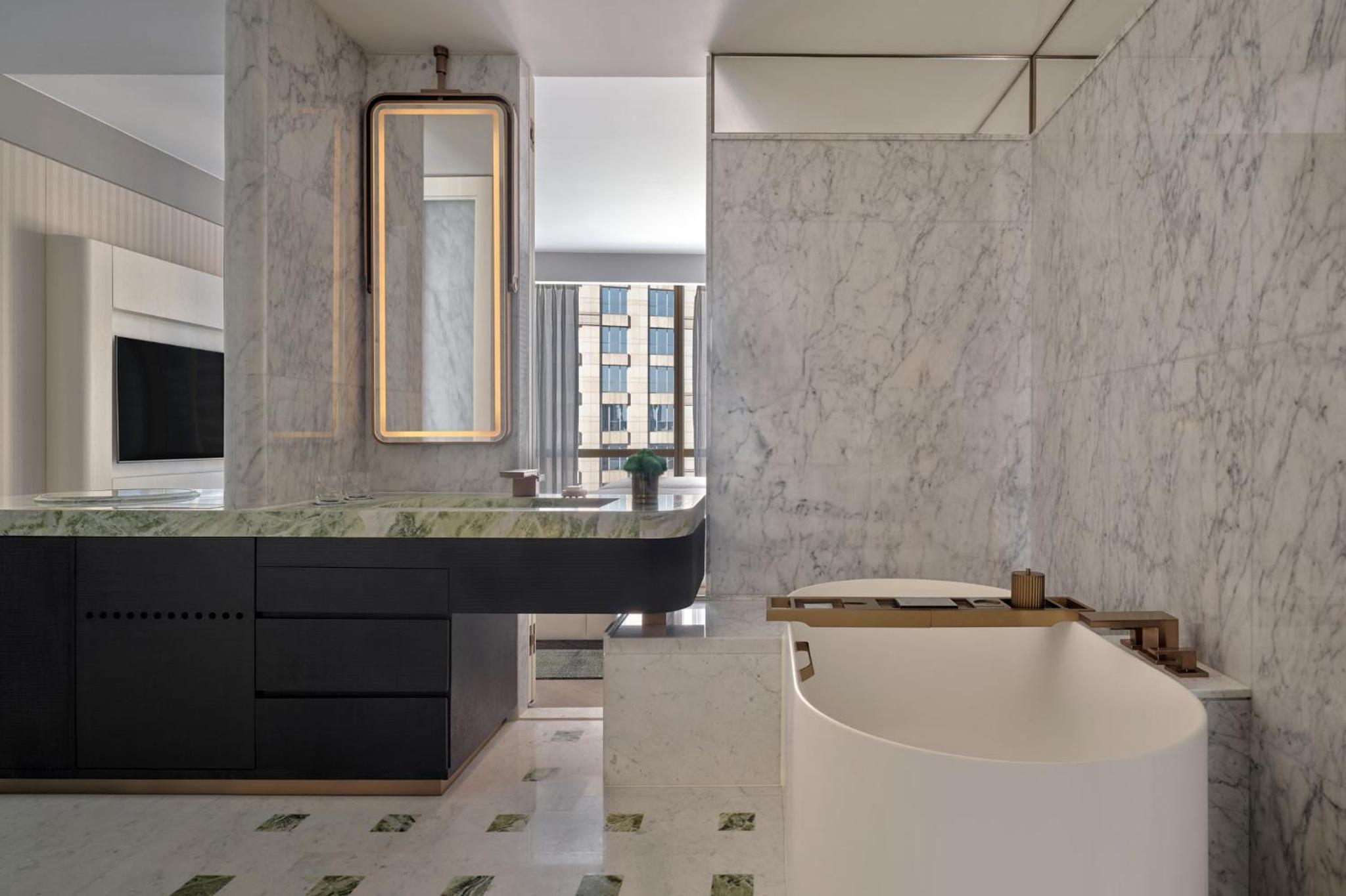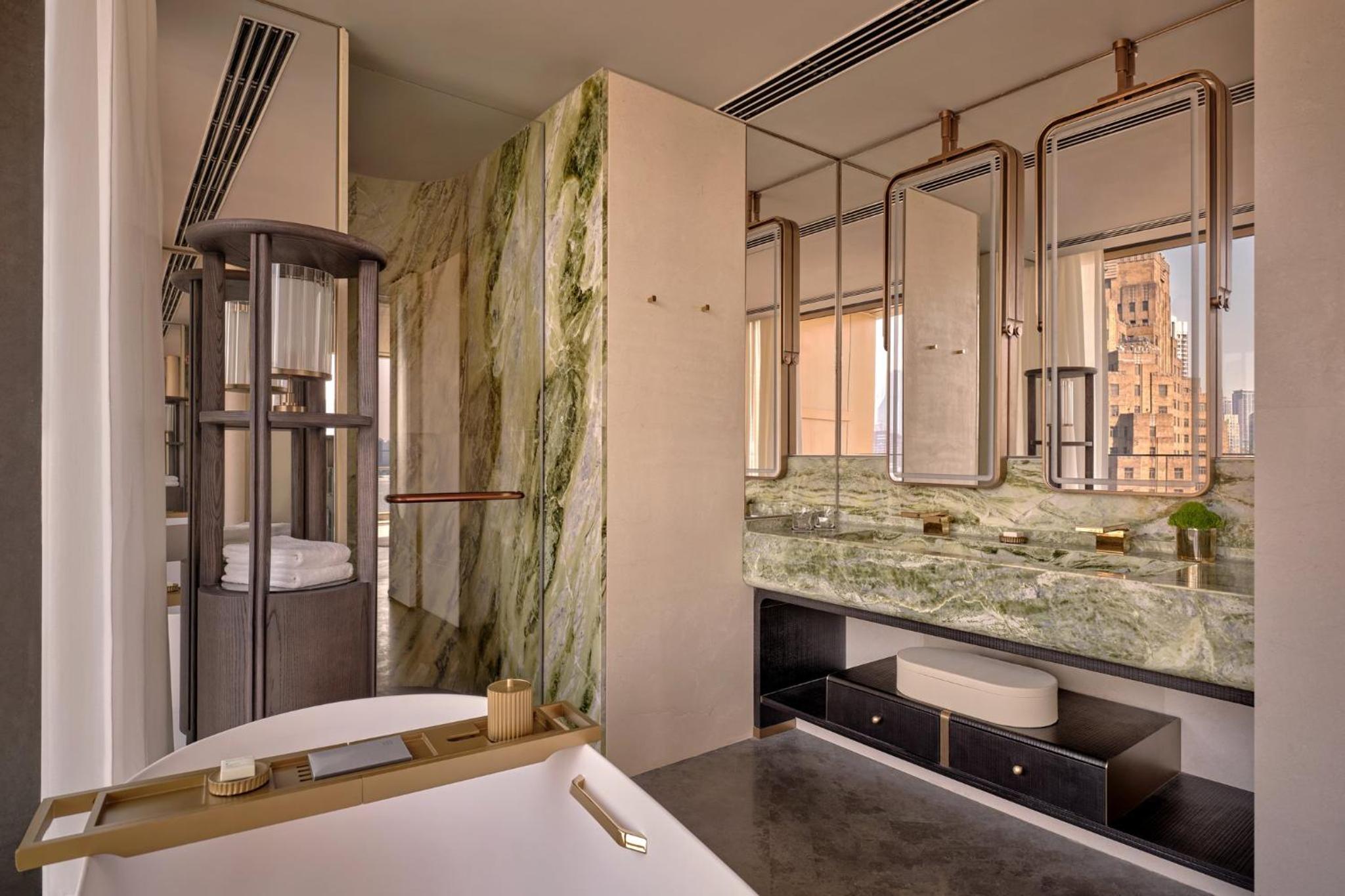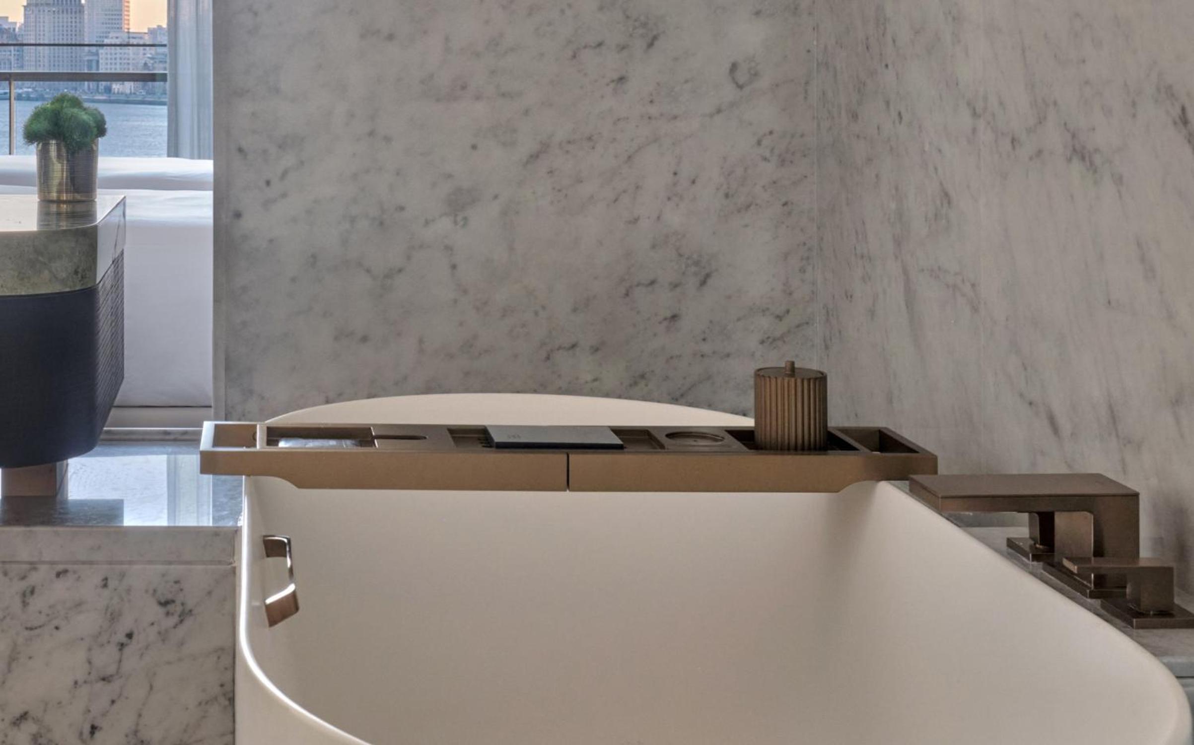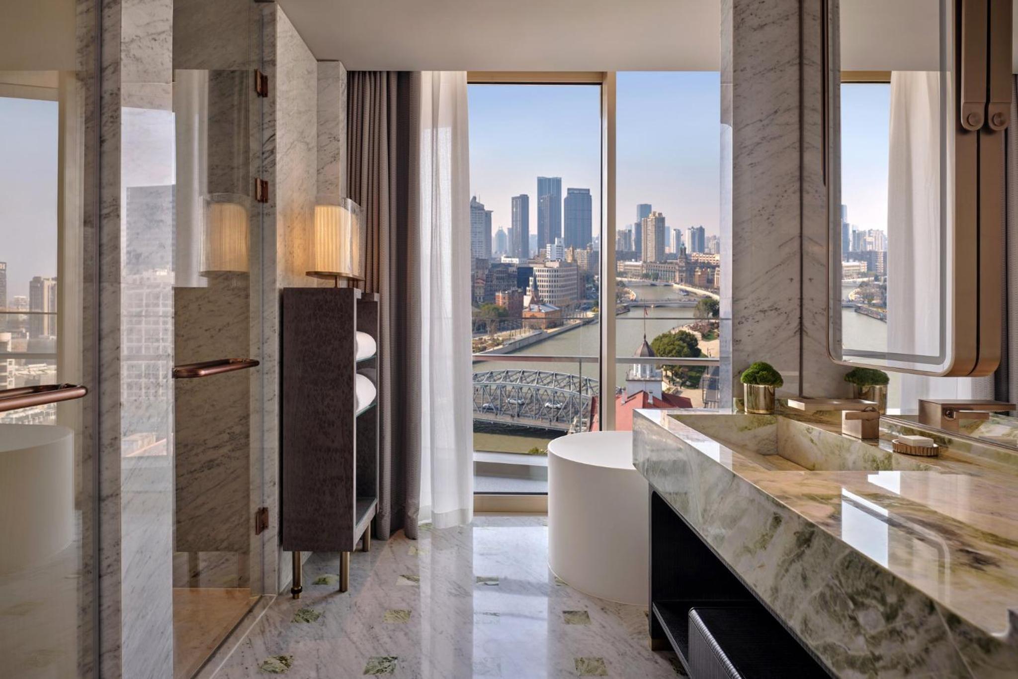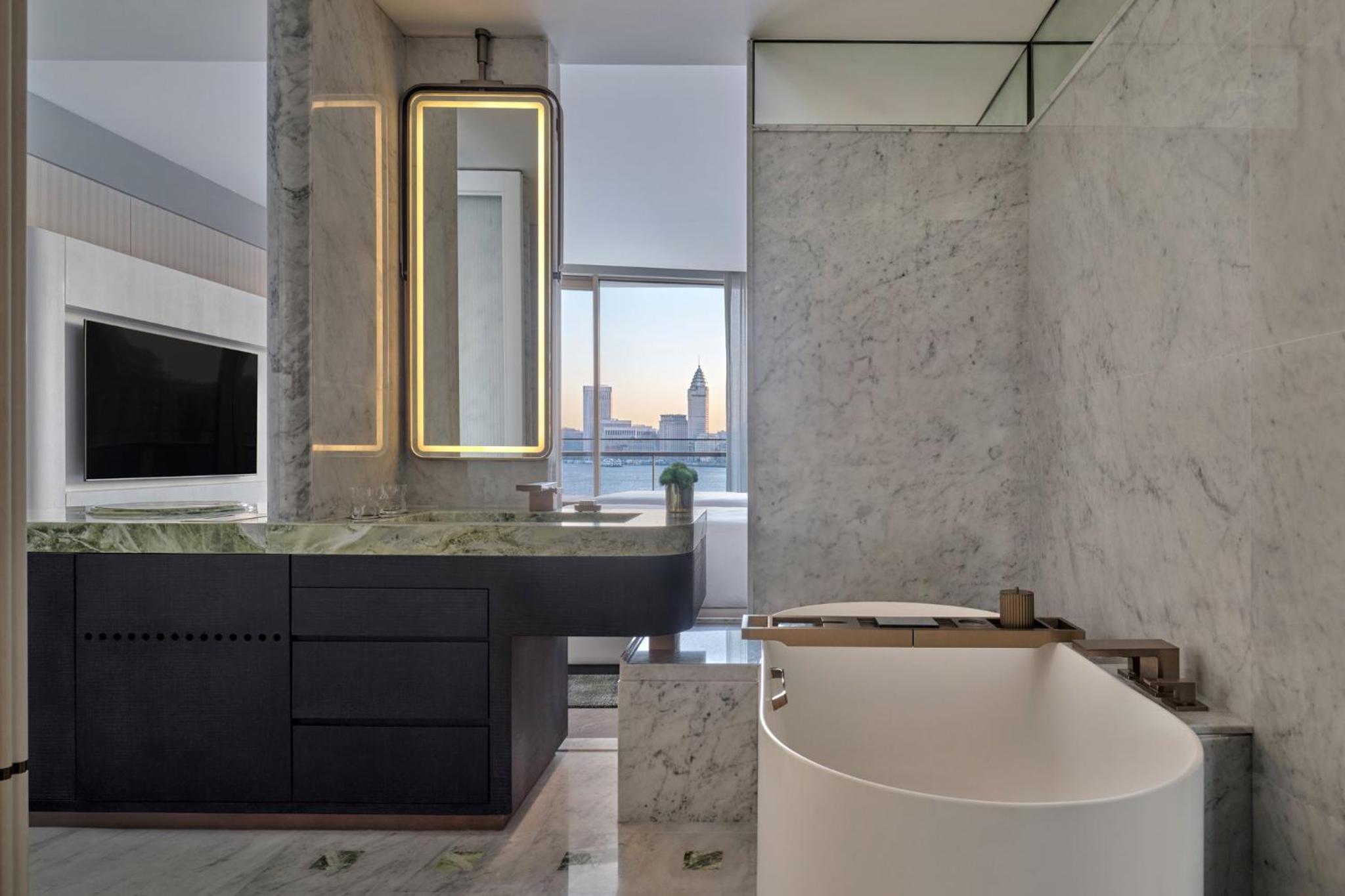 Fantastic location on the Bund. Amazing views from the room. Hotel new and tastefully and luxuriously decorated. Tower view rooms do really have a fantastic view - bathtub with an amazing view and balcony.